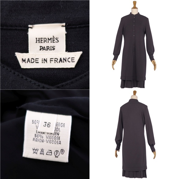 | 美品 エルメス HERMES ゴルチエ期 ワンピース ニット 長袖 ウール メドールボタン レディース 36(S相当) ブラック |