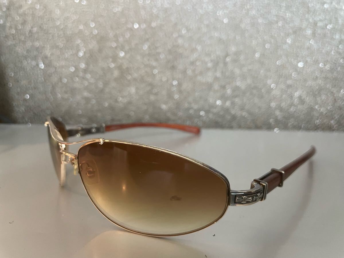 クロムハーツ東京で購入したCHROME HEARTS (クロムハーツ) DRAGSTAR になります。フレームはゴールド・サイドCH・つるはブラウンカラーのエボニーになります。殆ど使用せず飾っておいたものなので状態は良いです。