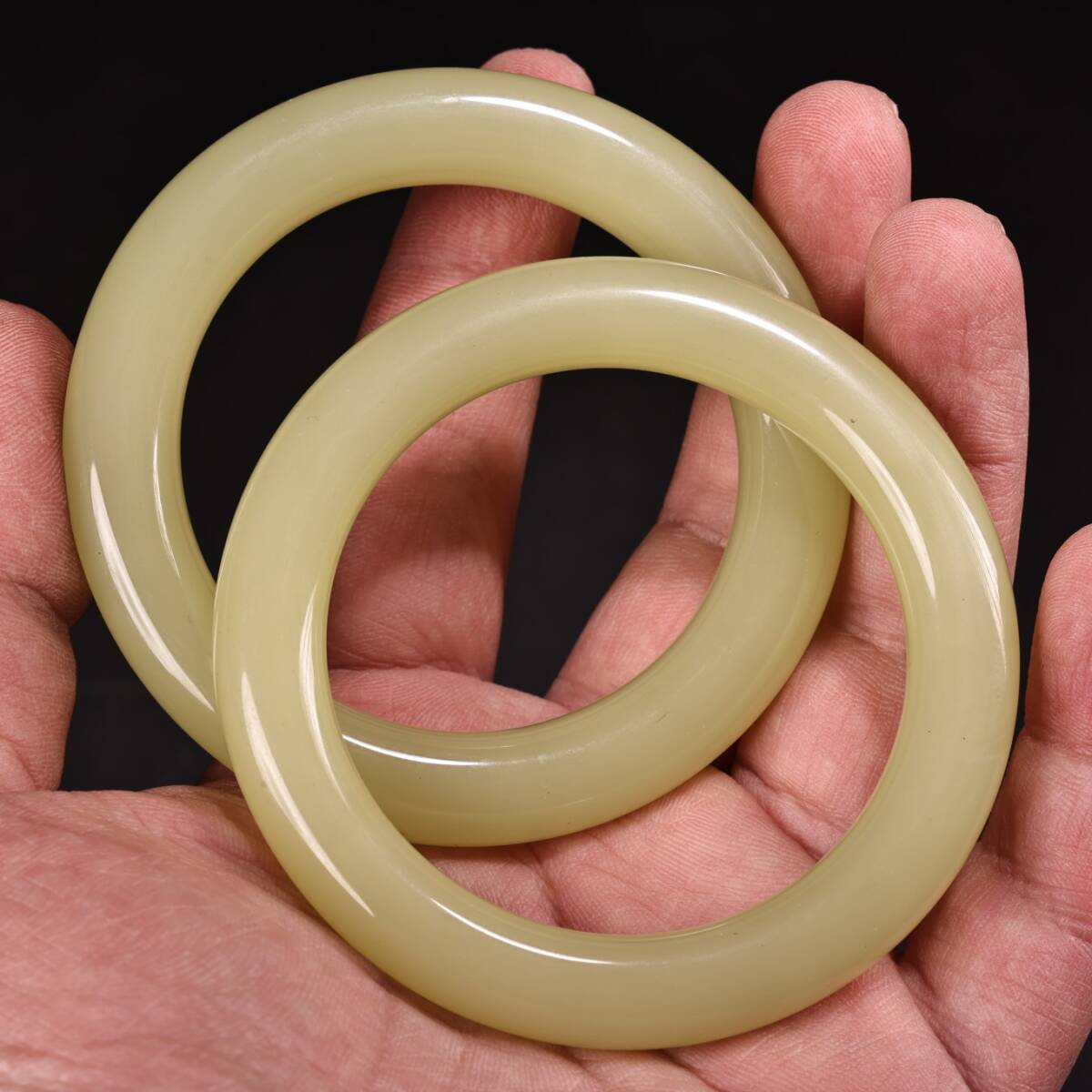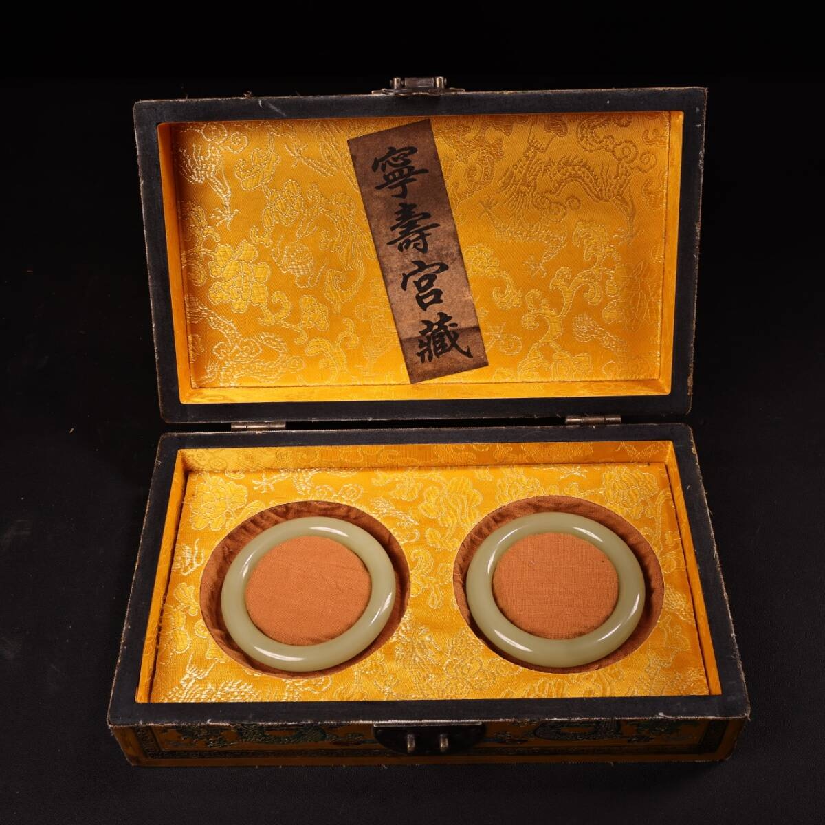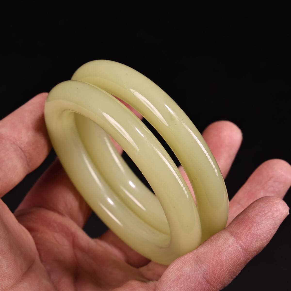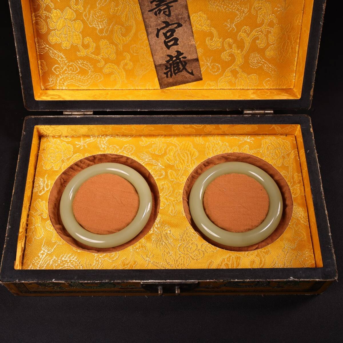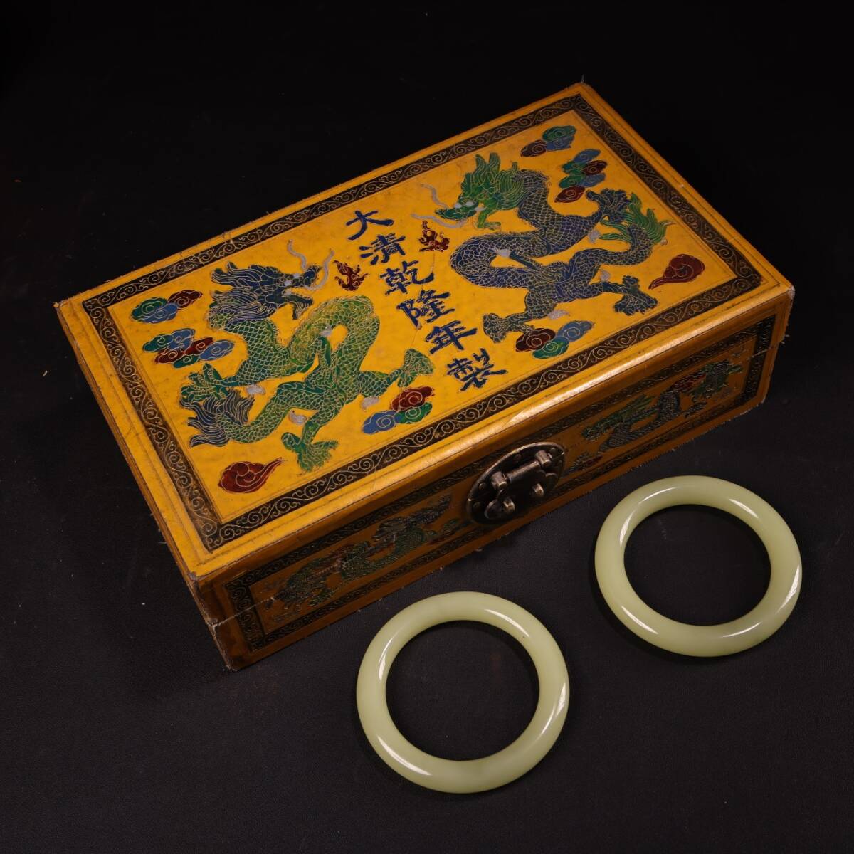 清 宮廷御製 古和田玉彫 青白玉 腕輪 漆器盒 箱付 極細工 東洋彫刻 骨董品 古賞物 中国古玩 中国古美術
