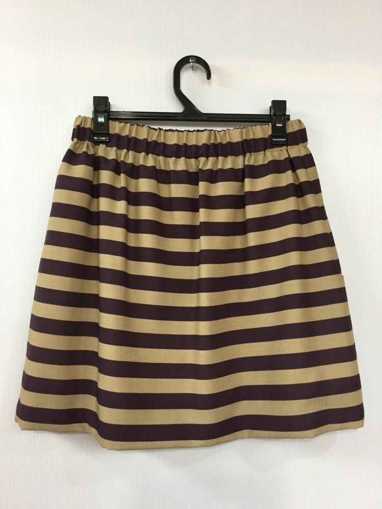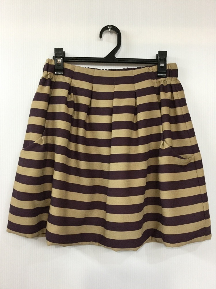 管理番号:10^119001 アナトリエ ベージュとパープル ボーダースカート ウエストゴム 表示サイズ:38 実寸(参考)
