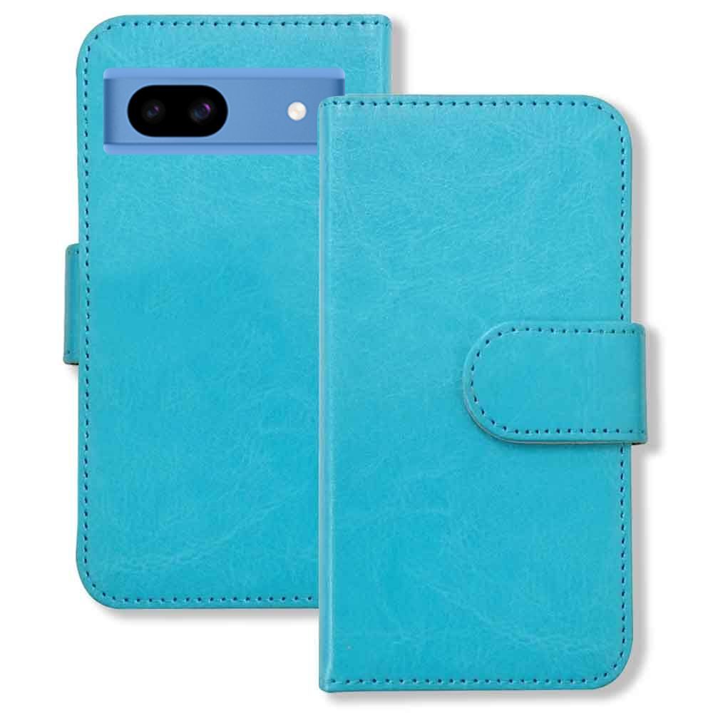 Google Pixel 8a スマホケース(手帳ブルー)手帳型 PUレザー 無地 ケース ダイアリータイプ 横開き カード収納 カバー