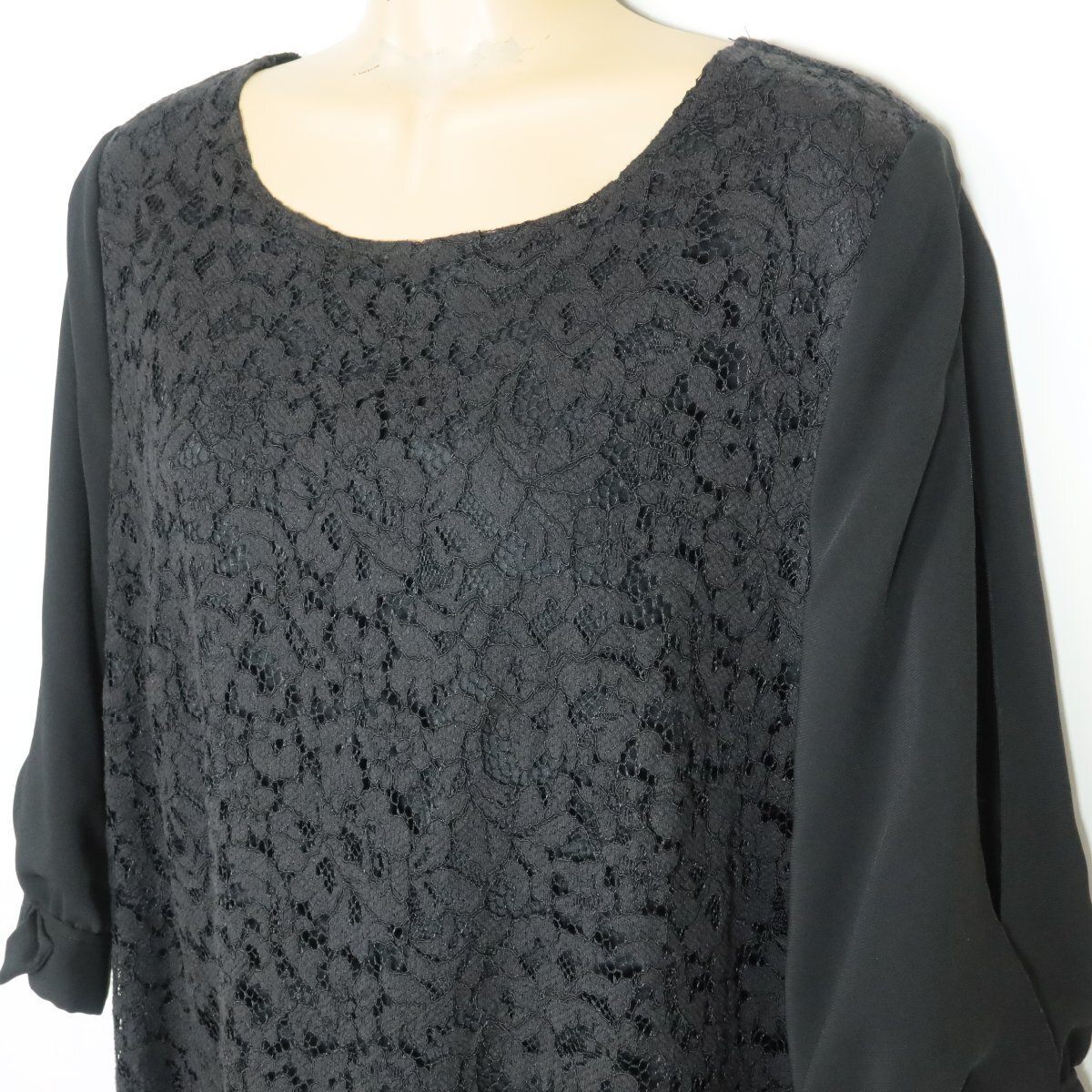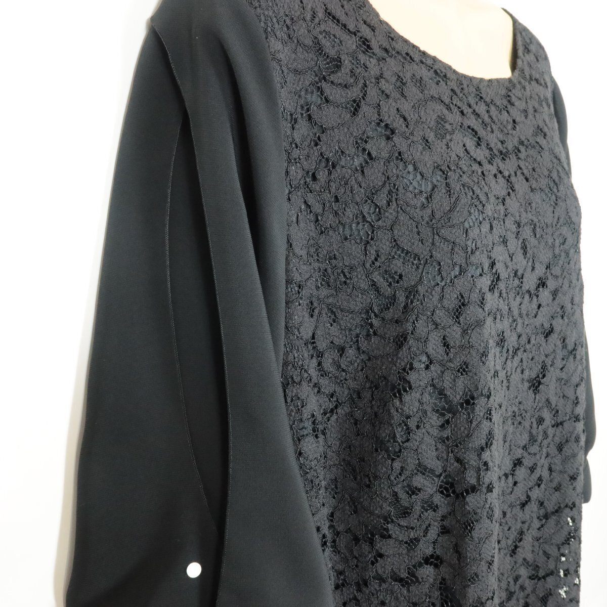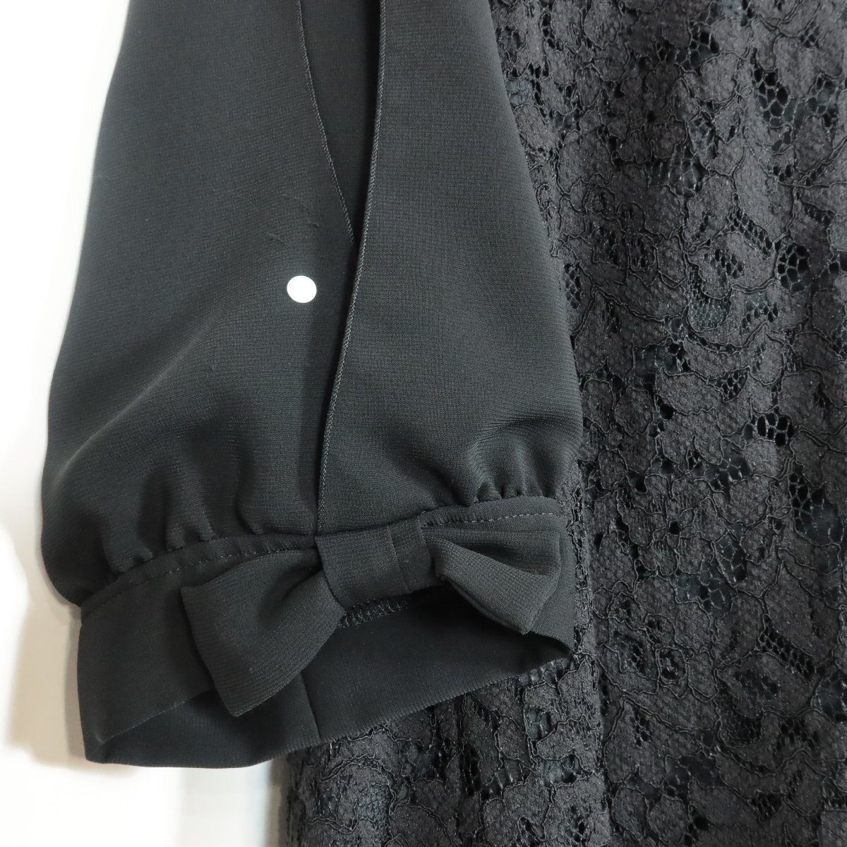 | 商品説明 | 【実寸約】肩幅42 袖丈42~44 バスト114 着丈97(cm) 【サイズ表記】F2 【素材】表地 綿40 レーヨン34 ナイロン26 袖部分 ポリエステル 【状態】普通の使用感のあるお品物 右袖にひっかけあり。 【デザイン】 ブラック系 色々な生地を組み合わせた長袖ロングワンピースです。 カットワークレースや生地を重ねた袖、袖口のリボン、裾のチュールレースなどこだわりの一枚♪ オケージョンシーンにも♪ バックファスナー仕様。 袖口にスリットあり。 |