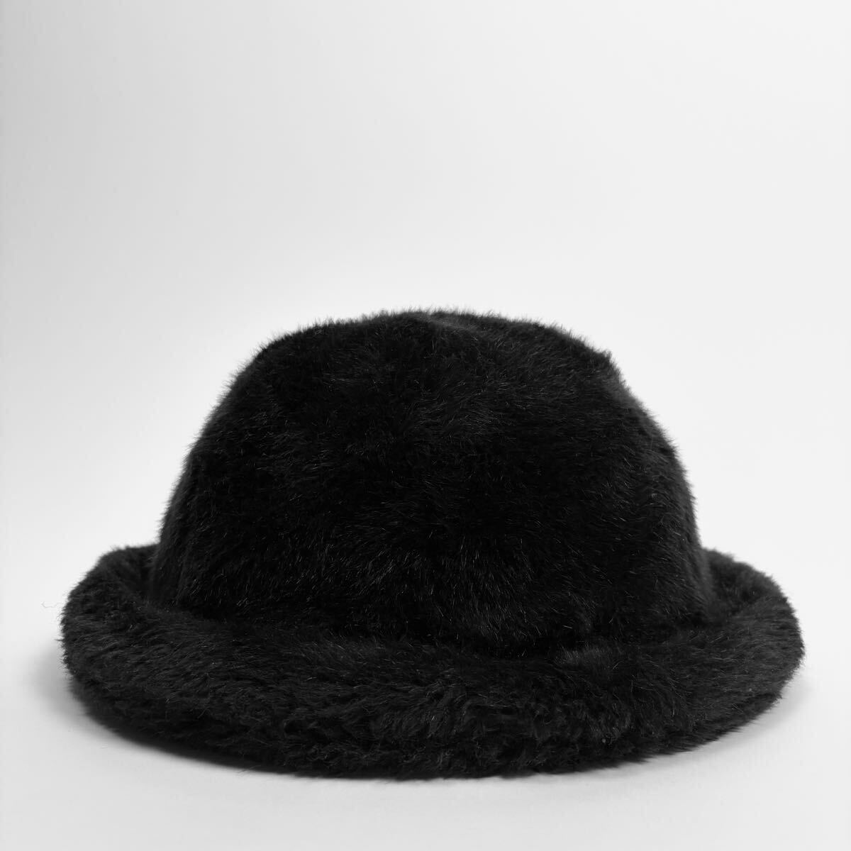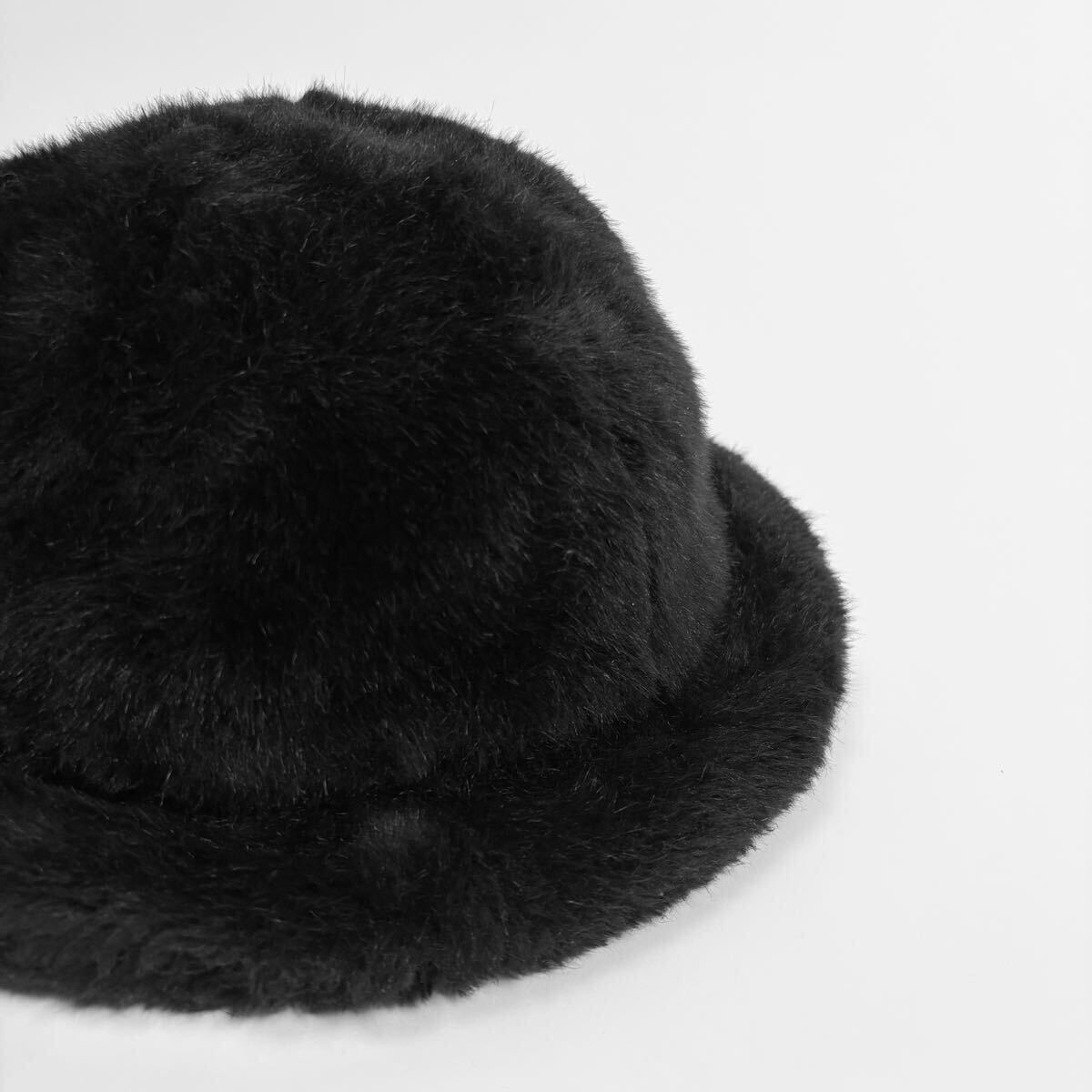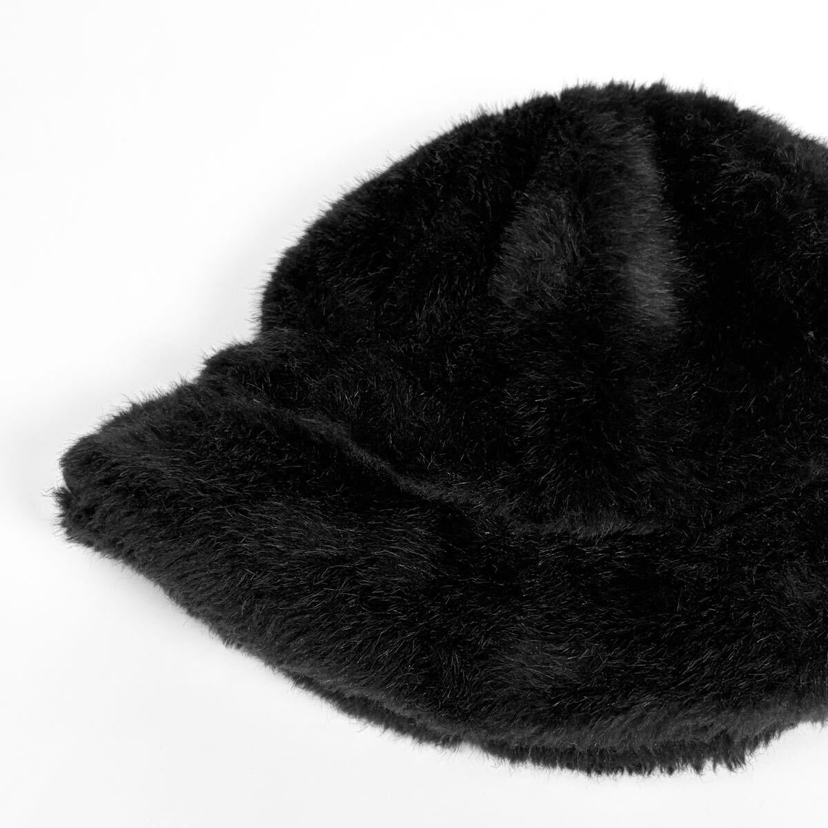 本作は、毛足のあるフェイクファーを全面に配したバケットハット。深めのクラウンと緩やかなブリムがつくる陰影は、どこかジャミロクワイを思わせる。音楽的で、抽象的——けれどどこか、日常に落とし込めるバランス感も