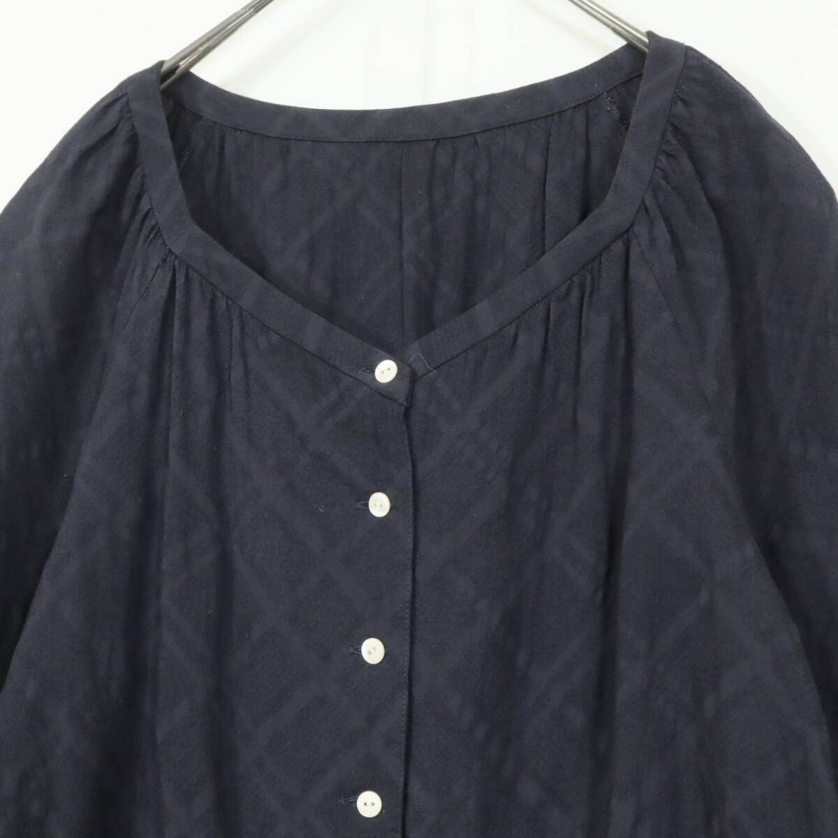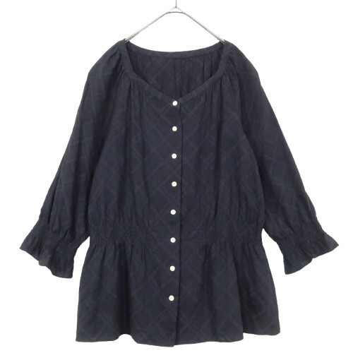 商品説明 | 【実寸約】裄丈66バスト96着丈57.5(cm) 【サイズ表記】 9R 【素材】レーヨン49コットン42麻9 【状態】普通の使用感のあるお品物 背中にひっかけ少々あり 【デザイン】黒系 ウエストを絞った七分袖ブラウスです。 薄手/格子の地模様 ウエストと袖口はシャーリングデザイン。 |