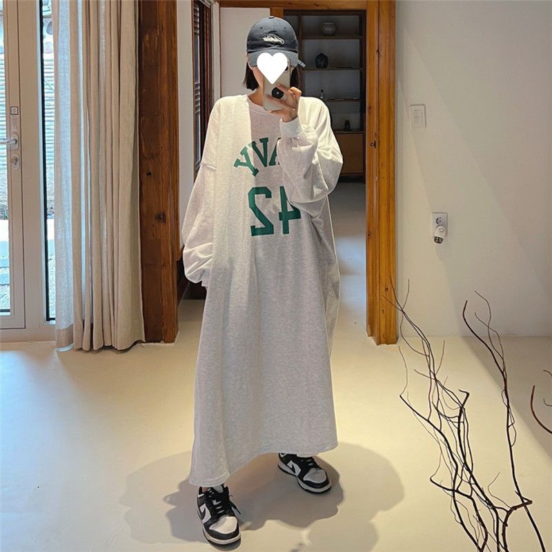 新品長袖パーカーワンピース レディースゆったり オーバーサイズ 大きいサイズ ロング トレーナーワンピース マキシ丈 (L-4XL)サイズ選択可
