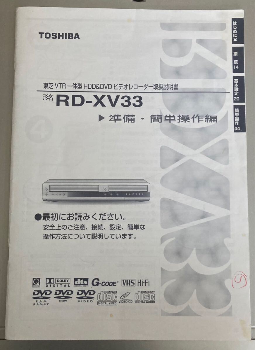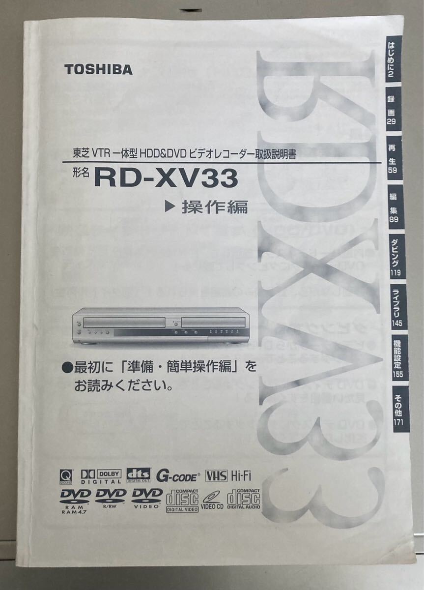 東芝 VTR一体型HDD&DVDビデオレコーダー RD-XV33 ジャンク品