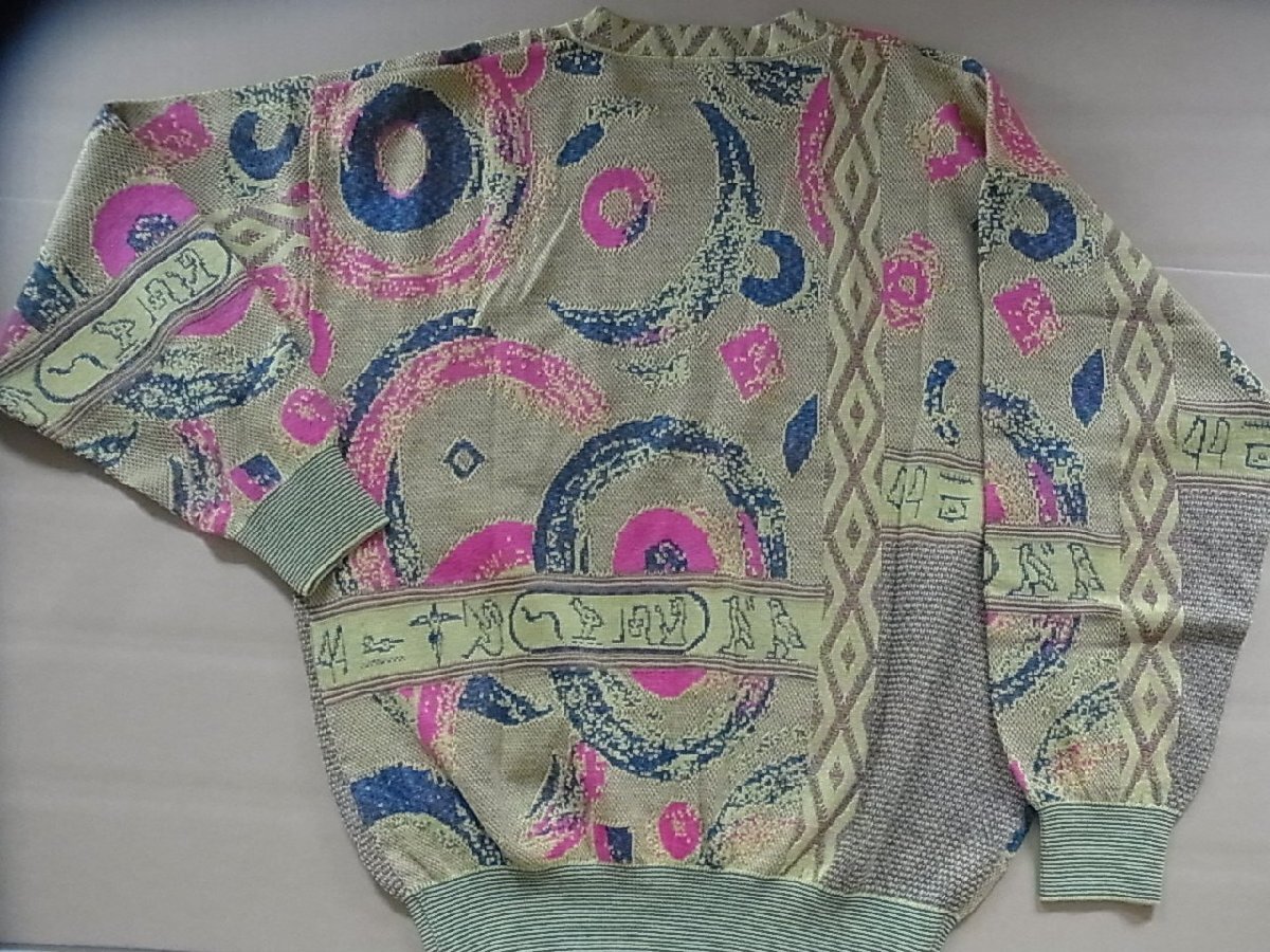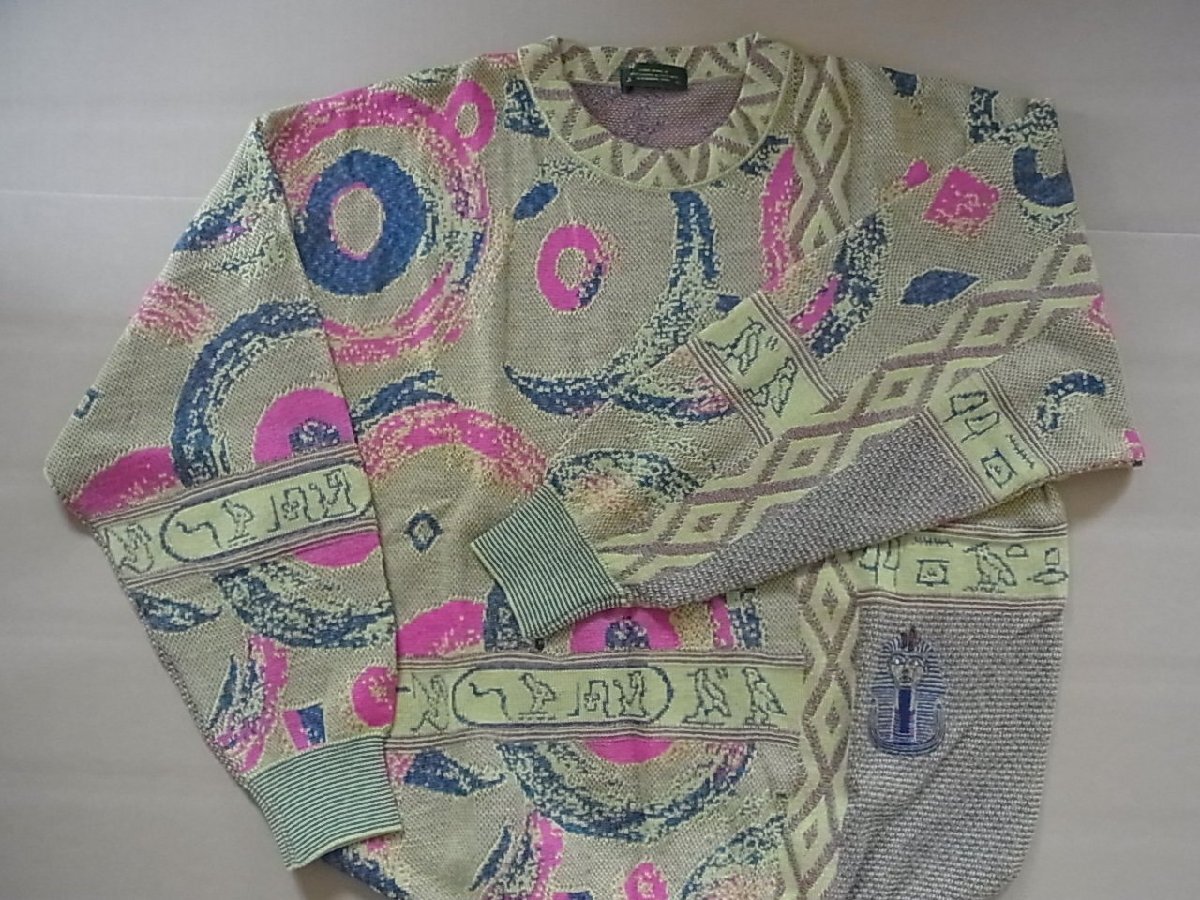 ジャンボ尾崎ファン必見! J's 丸首 スフィンクス 総柄セーター ビッグサイズ/EL ※3回ほど着用