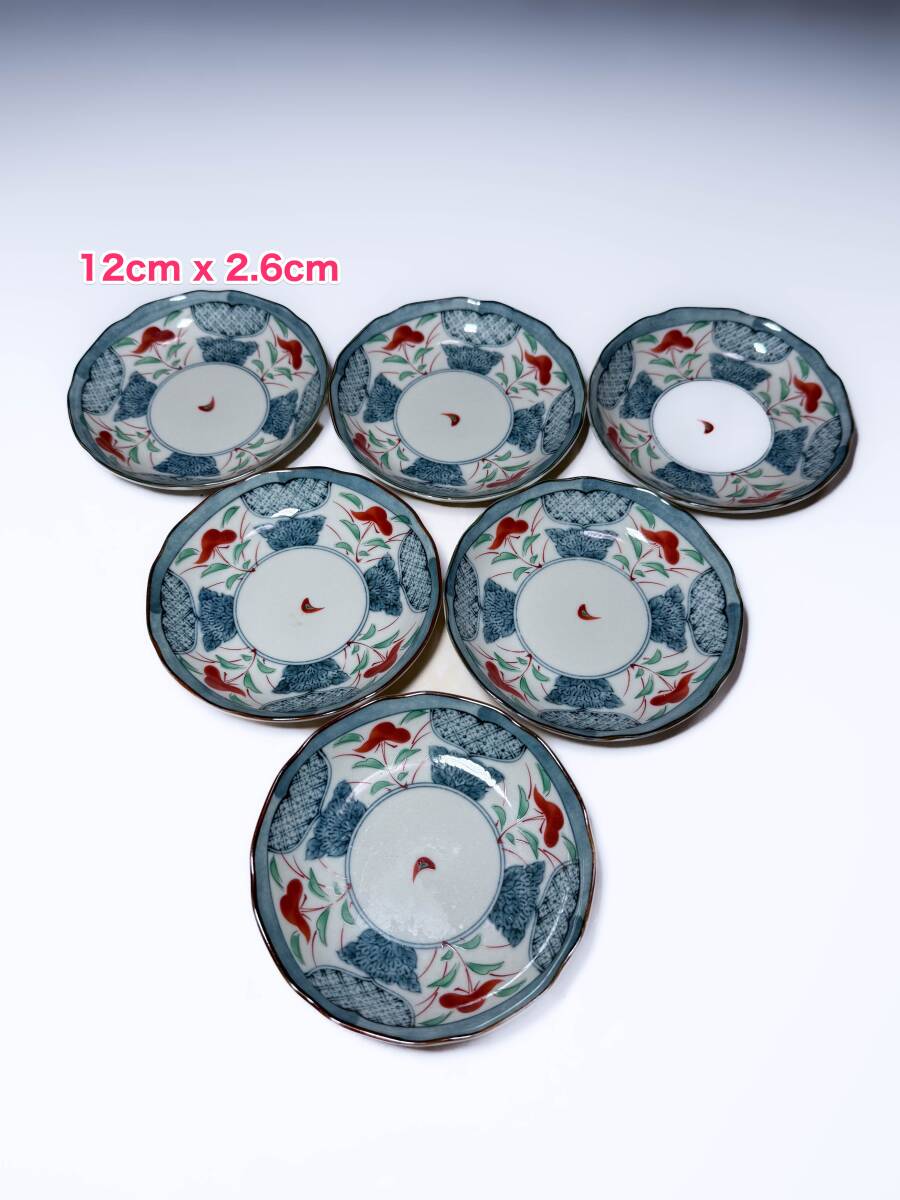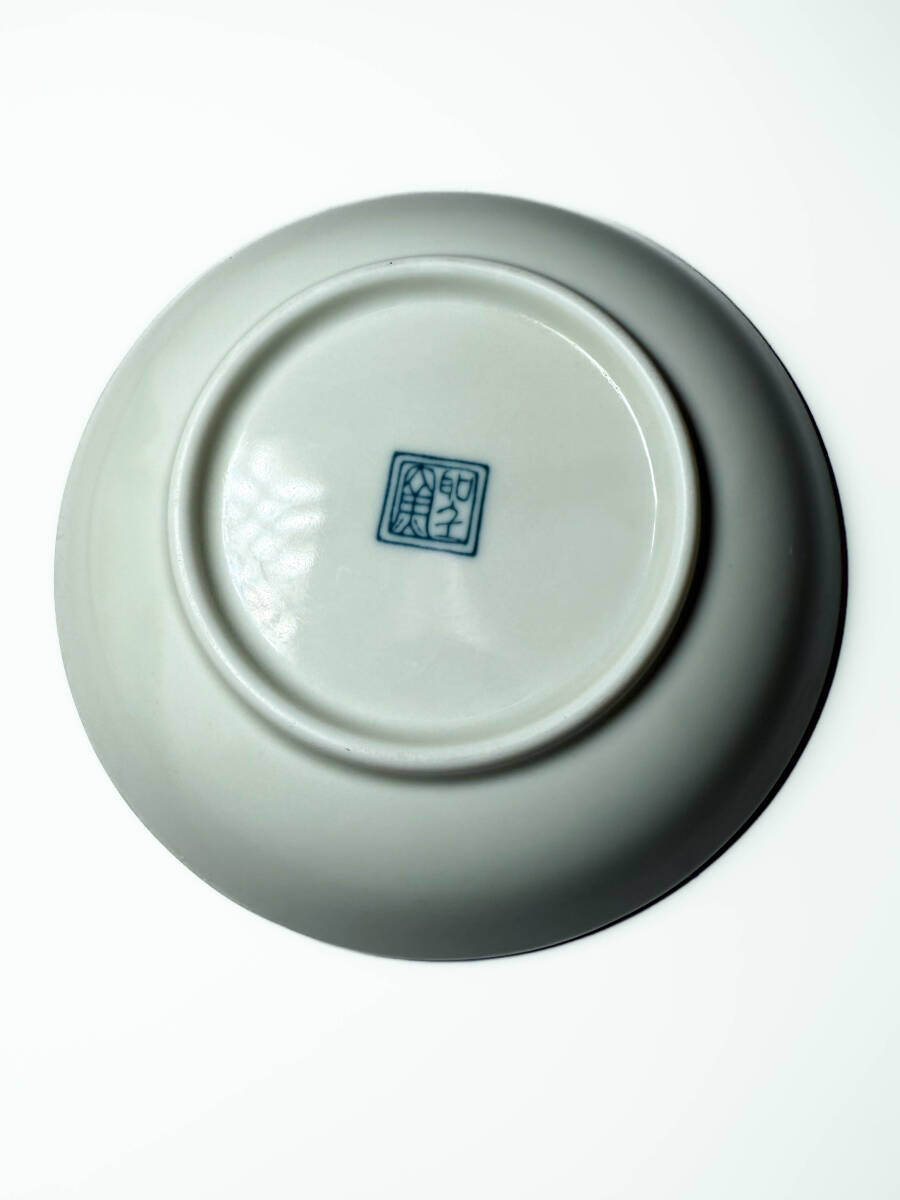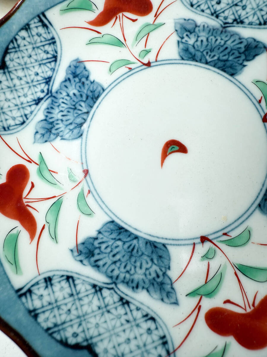[即決]美濃焼瀬戸焼赤絵染付窓絵草花図柄小皿銘々皿丸皿昭和レトロビンテージ古民具古道具