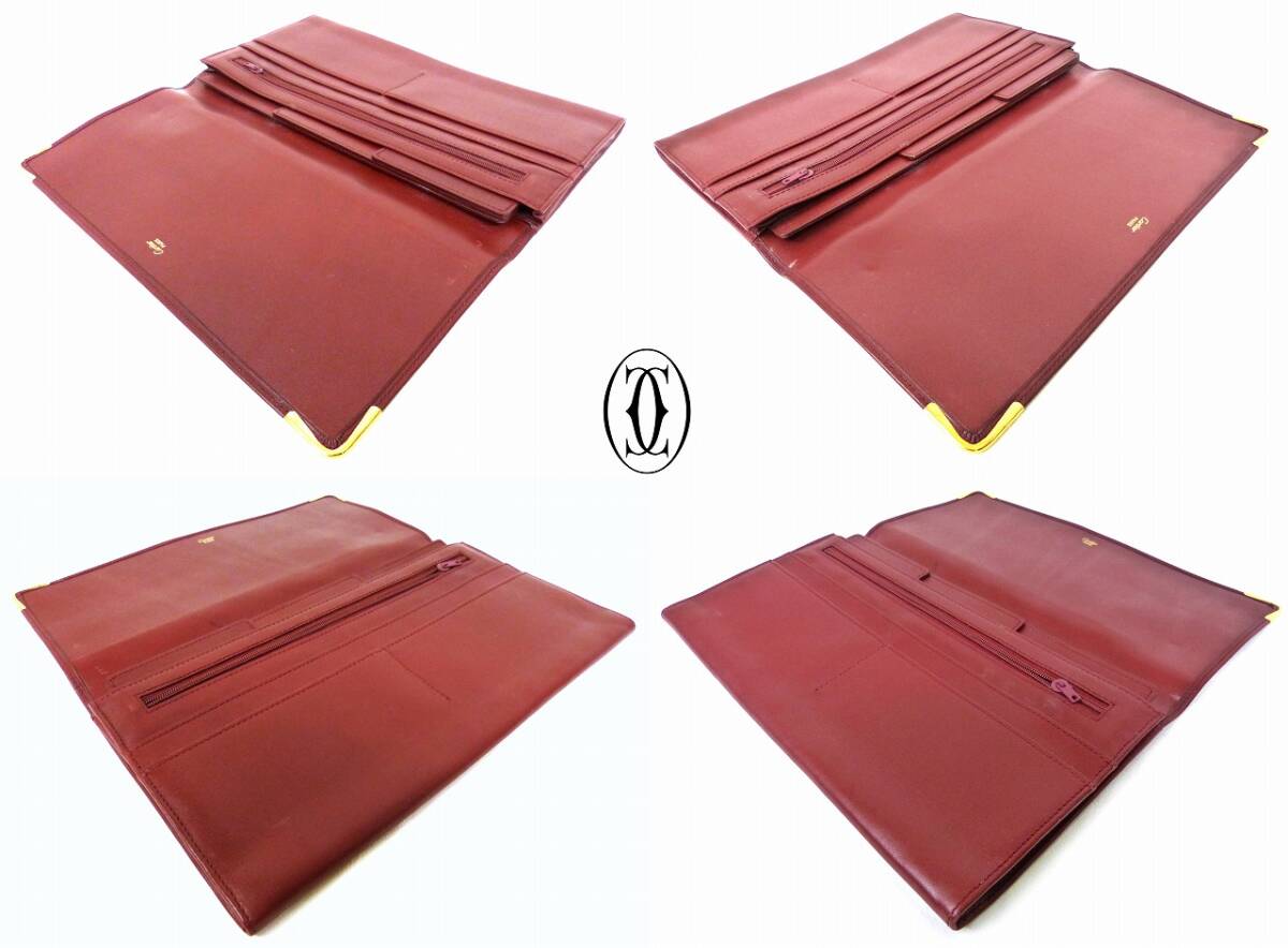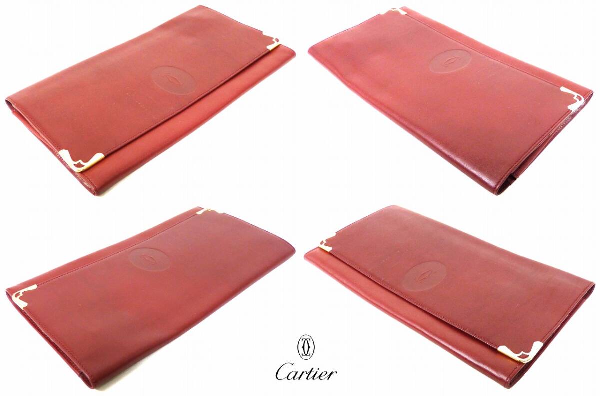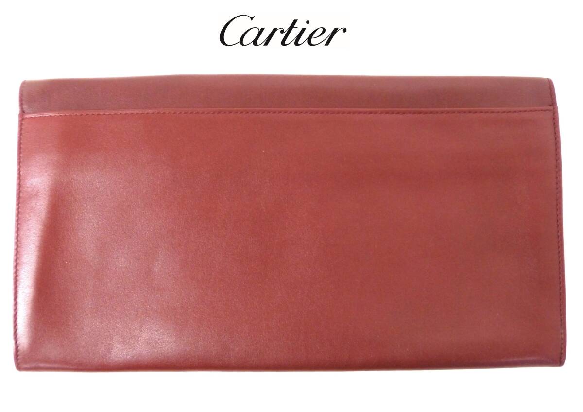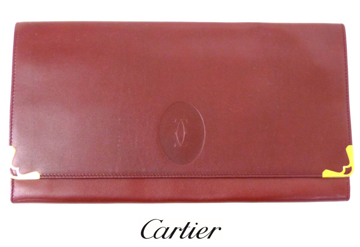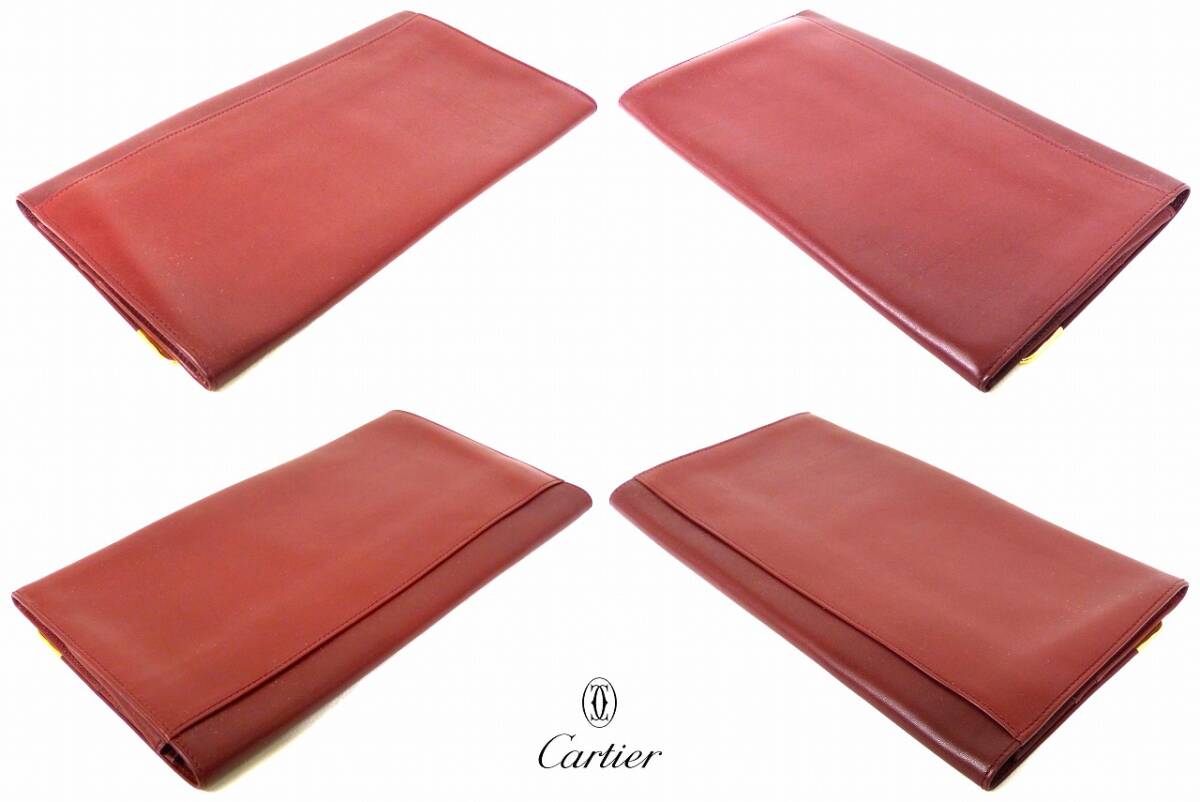 【良品】 Cartier カルティエ クラッチバッグ マスト ロゴ型押し レザー 本革 バック ボルドー ゴールド金具