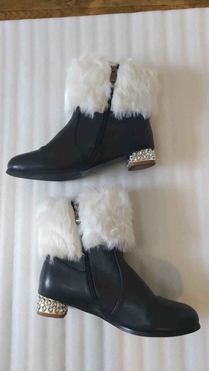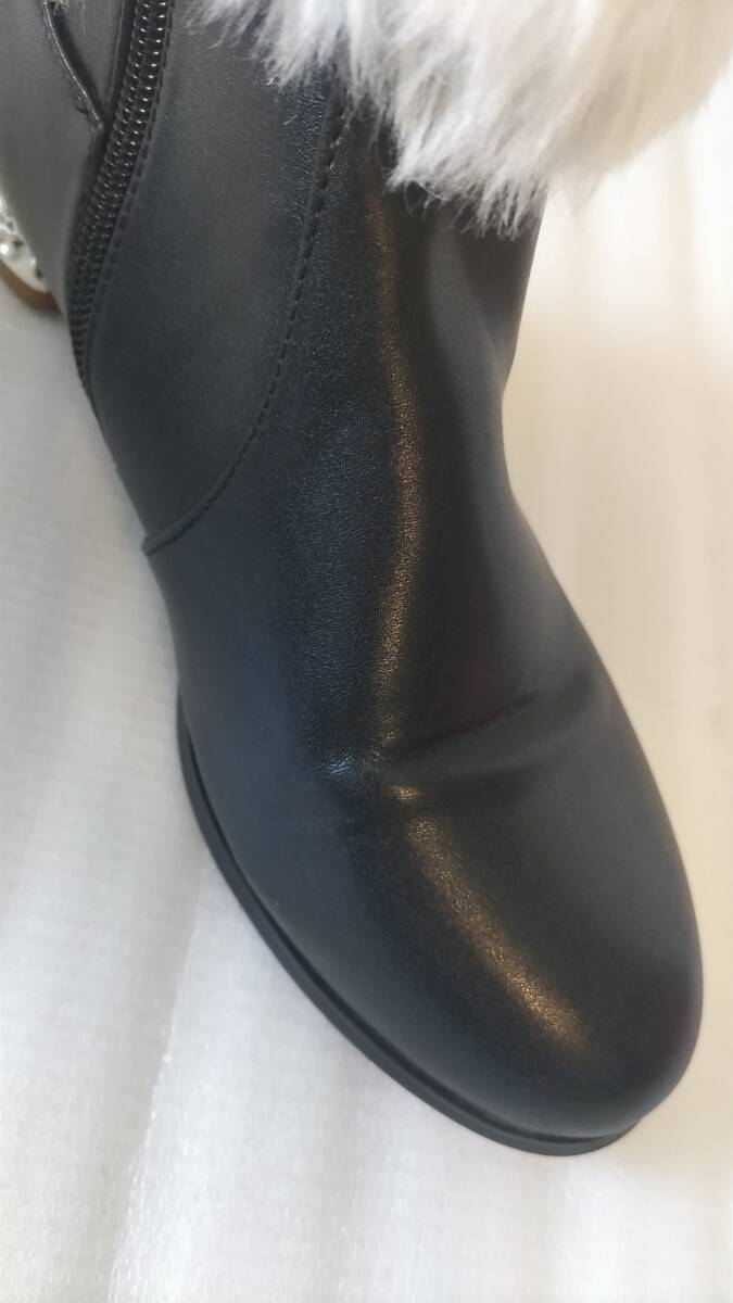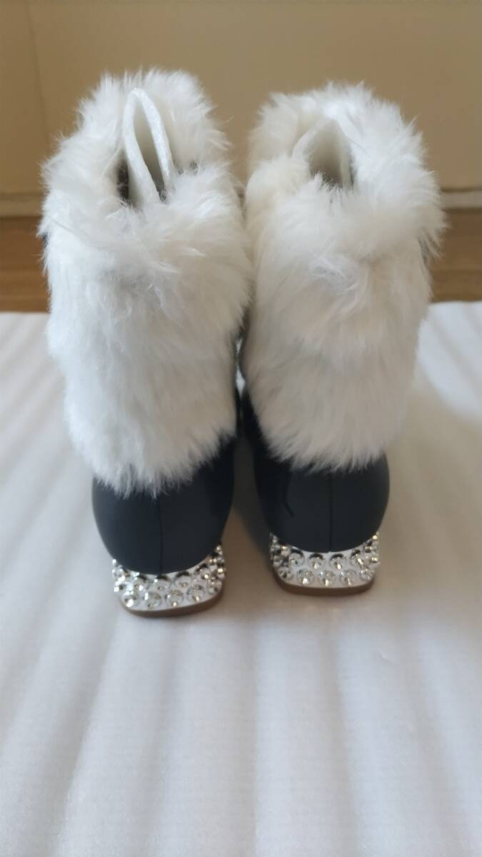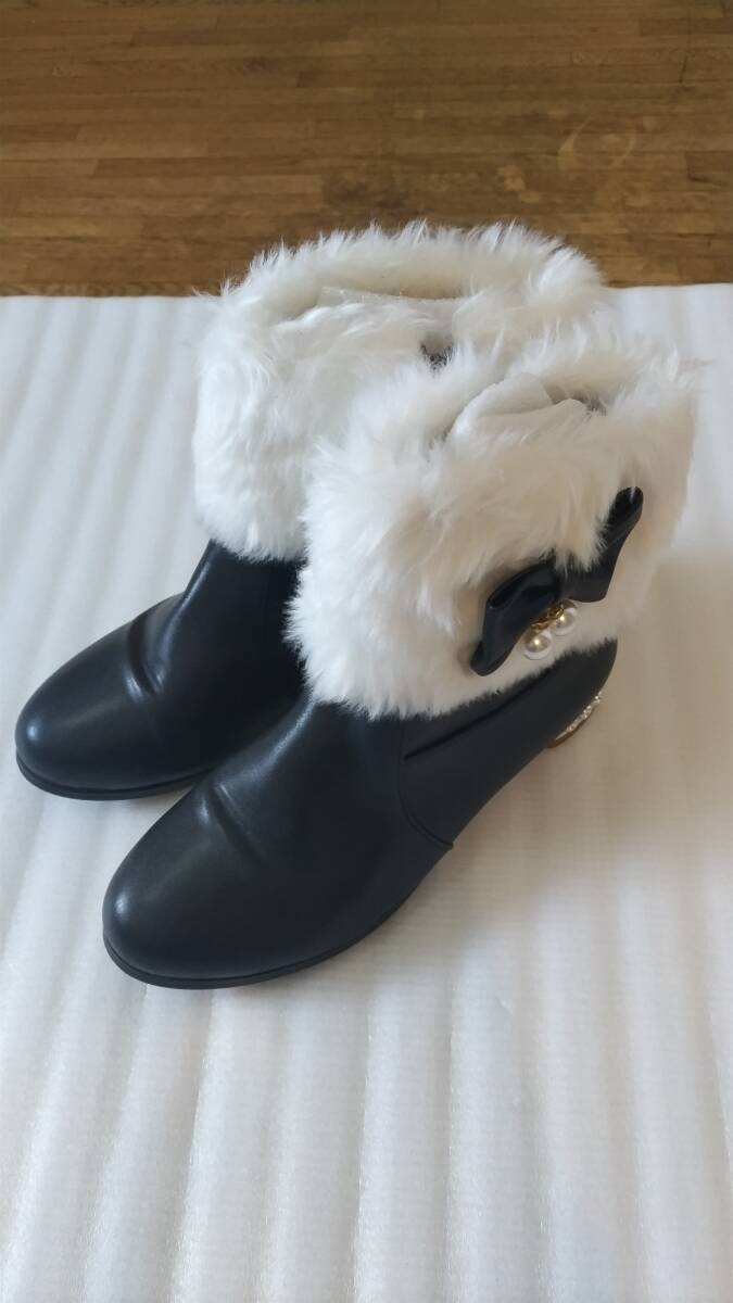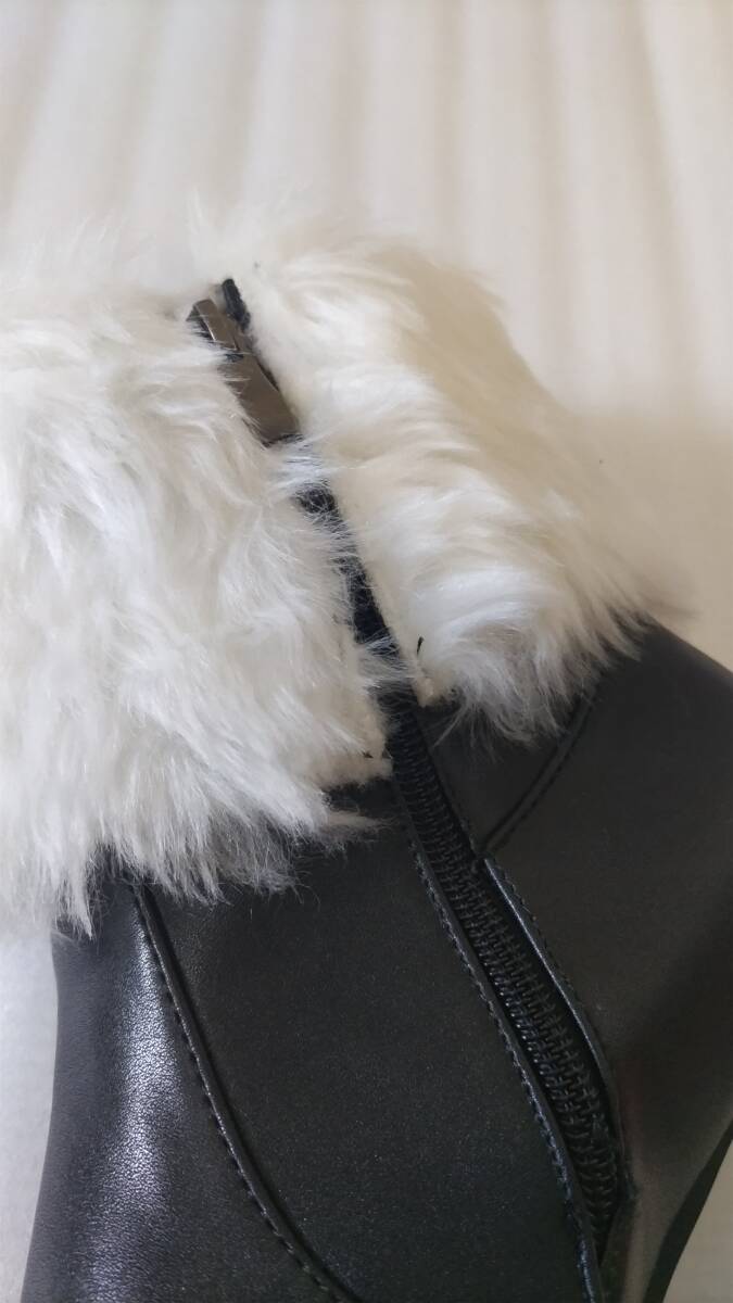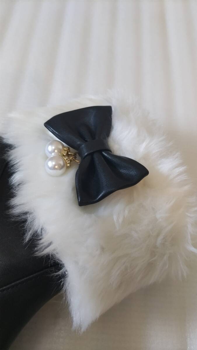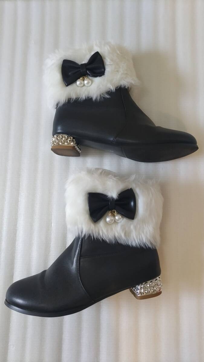 No.2675_海外ロリィタ_黒ファーとリボン飾りショートブーツ