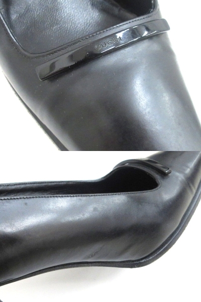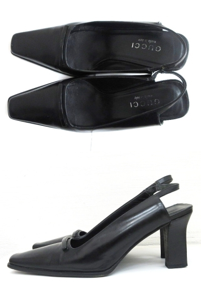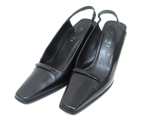 グッチ GUCCI スリングバック パンプス ブラック 36 1/2 靴 ヒール スクエアトゥ ☆AA☆