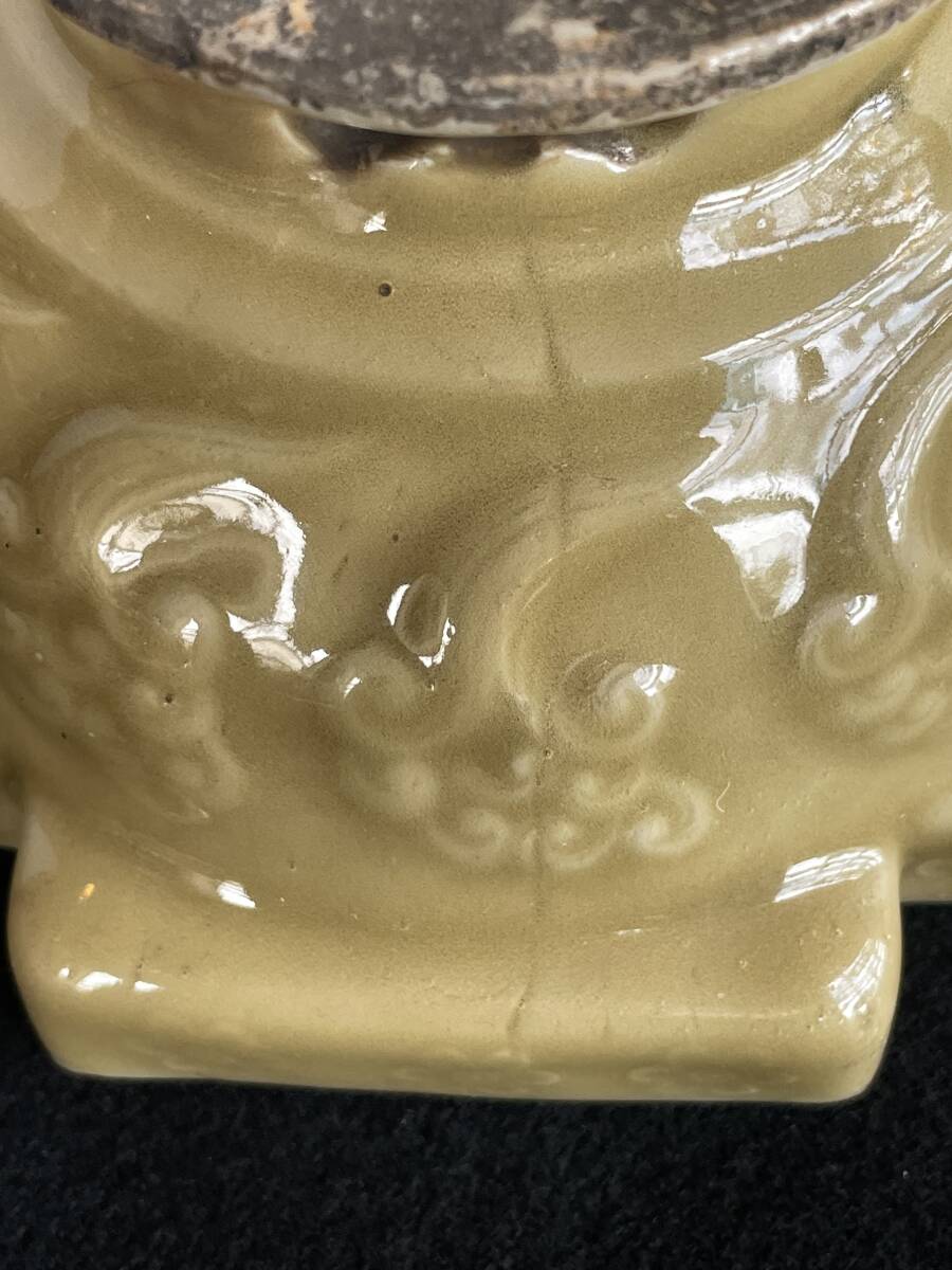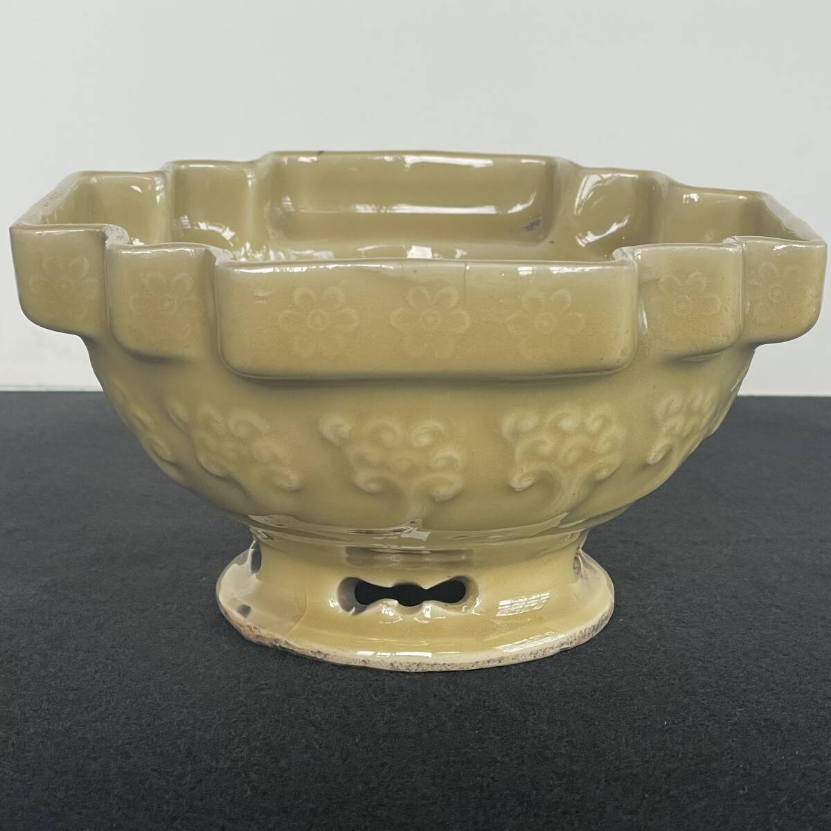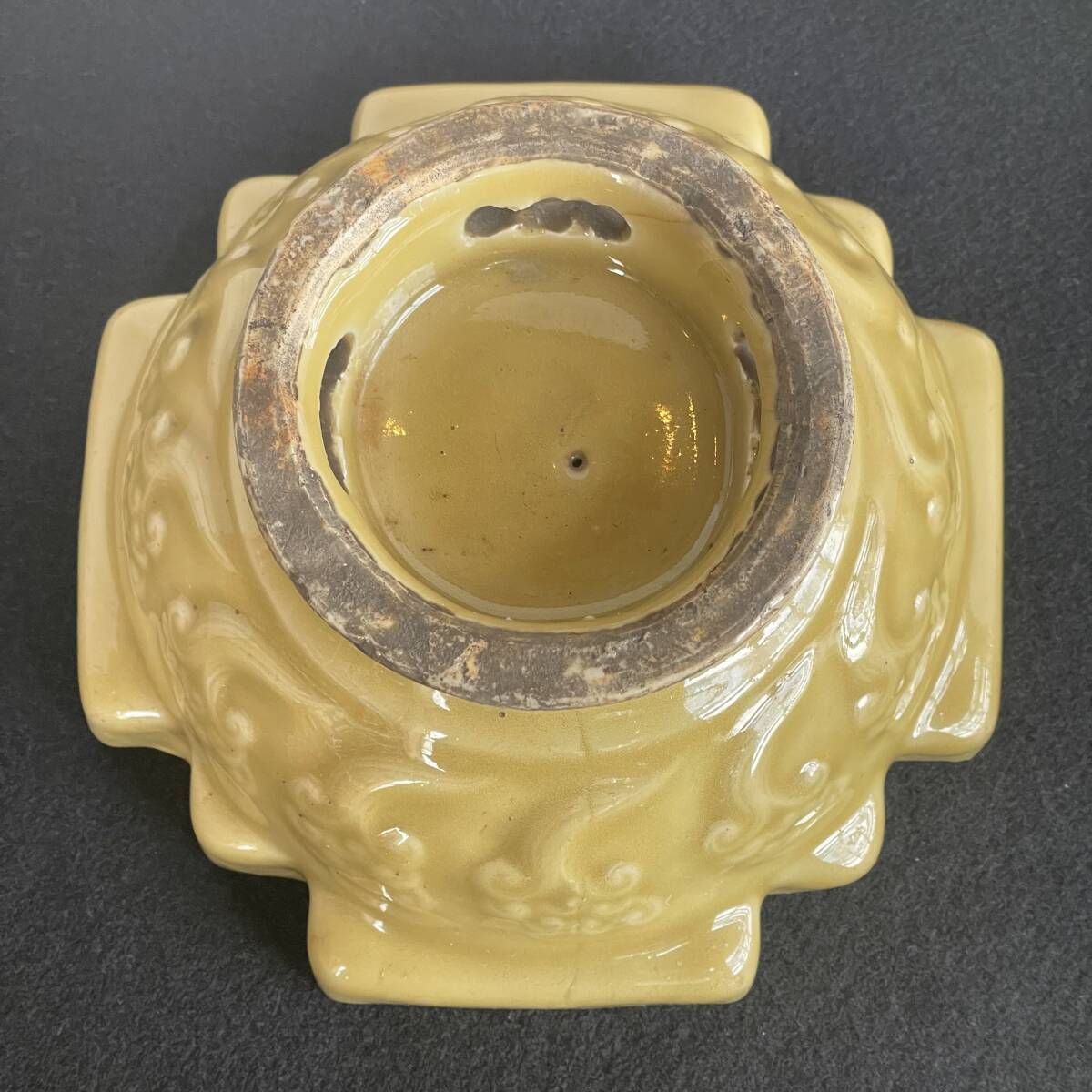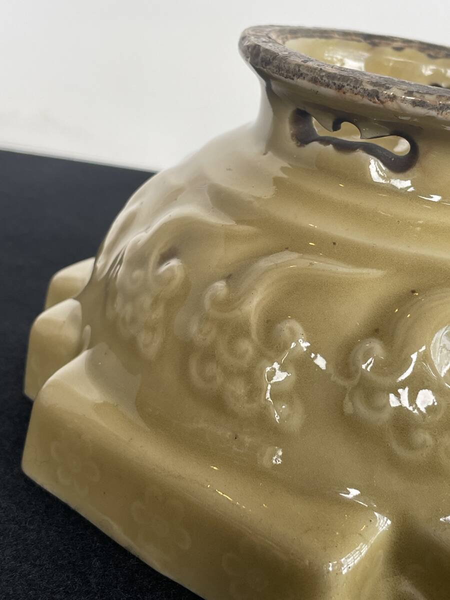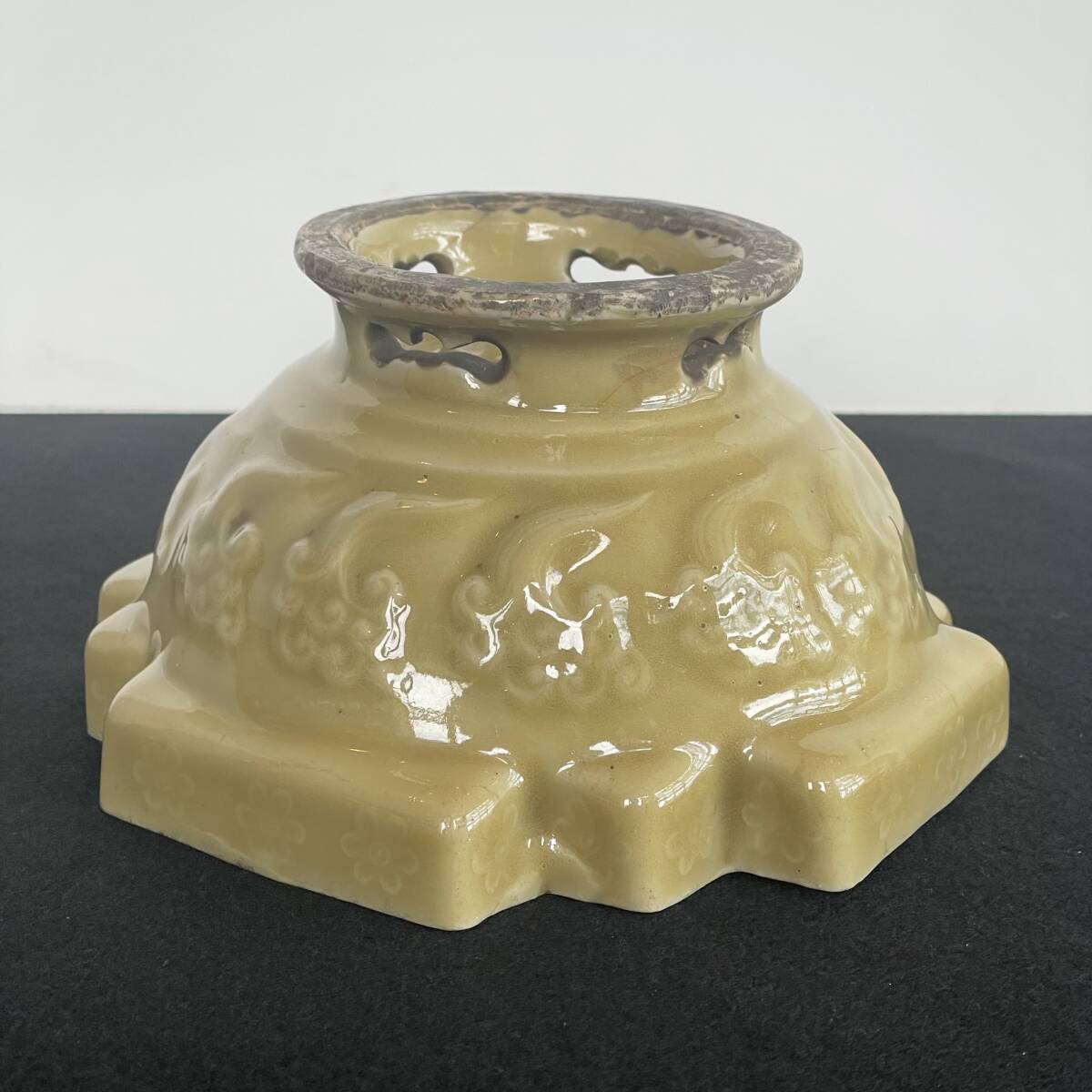 三田青磁としては珍しい、黄味がかった辛子色が印象的で、