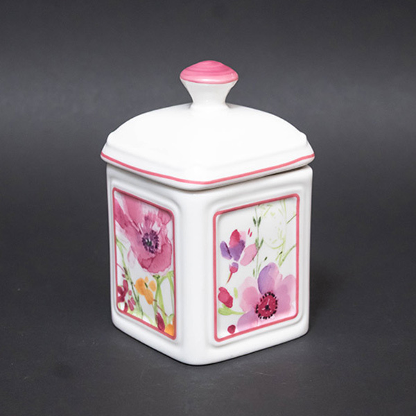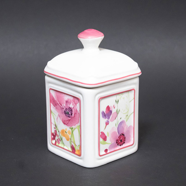 ビレロイ&ボッホのマリフルールのキャニスター。 モネが愛したフランスの庭園"ジヴェルニー"に咲き乱れる可憐な花々をイメージしてデザインされたシリーズで、紫、黄色、青のやさしい色彩の花々が重なり合うように水彩画タッチで描かれています。こちらはゴームパーツ付きの蓋で密閉できる小さなキャニスターです。 ■サイズ 横幅68 × 奥行68 × 高さ117mm ■付属品 なし ■状態 B(良品):特に目立つダメージのない、状態の良いお品物です。 |