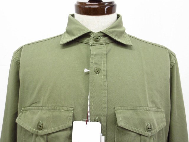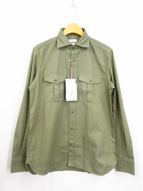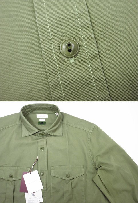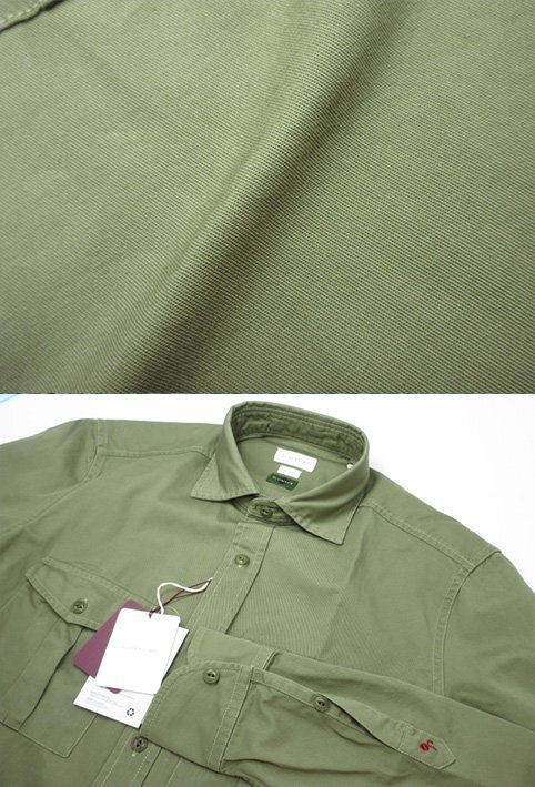未使用 【グランシャツ GLANSHIRT】SLOWEAR 5XRK00 G6004 740 定価41800円 両胸ポケット 長袖シャツ (メンズ) size38 グリーン系◯10GRS053