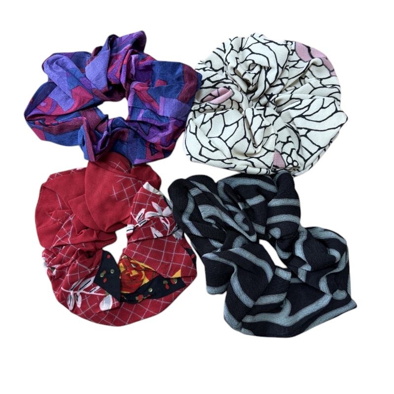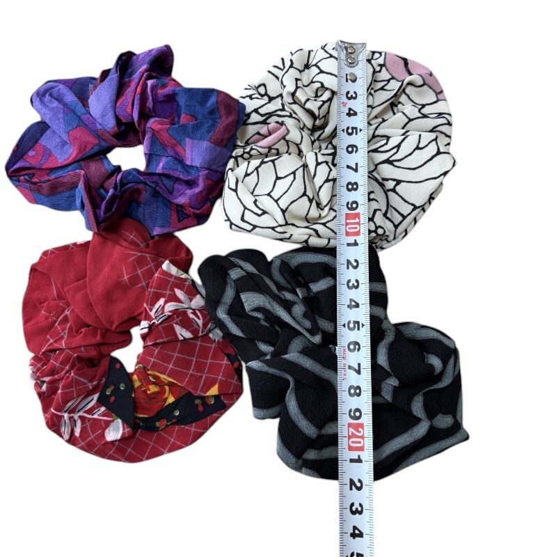 新品です。ビンテージ着物生地を丁寧にリメイクした、和柄シュシュ4個セットです。パープル、レッド、ブラック、ホワイトといった落ち着きのある色合いが揃い、和の雰囲気をさりげなく取り入れたおしゃれが楽しめます。それぞれ異なる柄が施されており、季節や気分に合わせて使い分けも可能。しっかりとした作りで、髪をしっかりホールドしてくれます。ビンテージ生地につき多少の汚れや傷はあると思いますがしようにあたっては問題にはなりません。