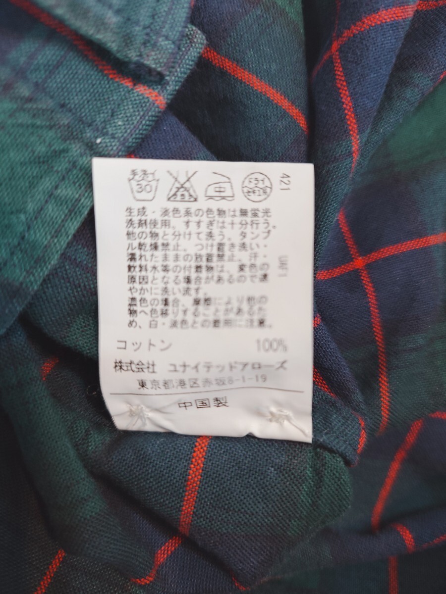 ユナイテッドアローズ グリーンレーベルリラクシングのチェックシャツです。
