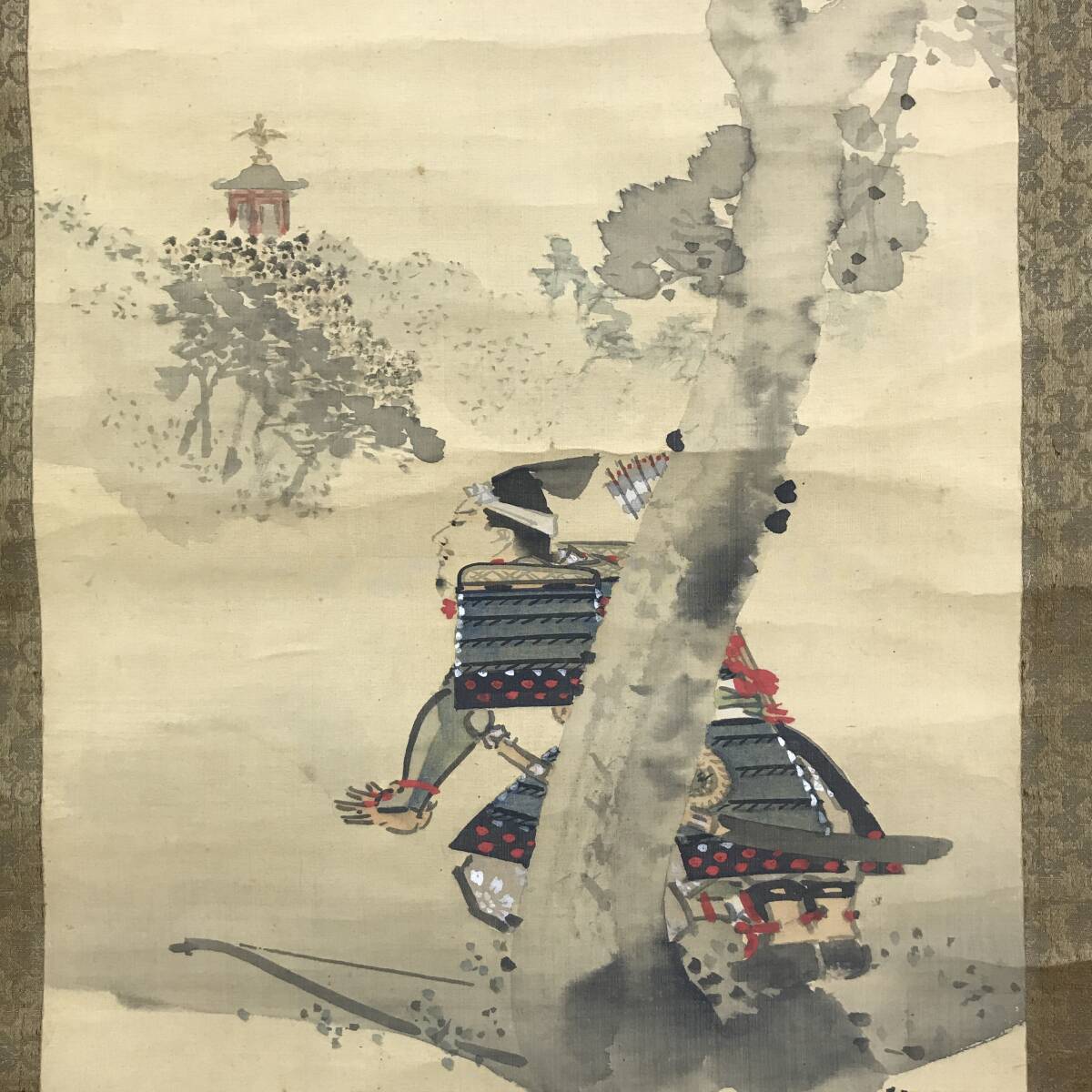 真作/作者不詳/武者絵/児島高徳/人物図/掛軸☆宝船☆AI-969