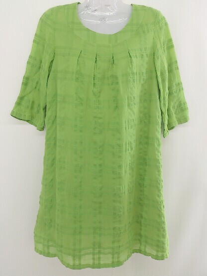 ◇ a.v.v stabdard バックジップ 七分袖 ミニ ノーカラー ワンピース サイズ 38 グリーン レディース