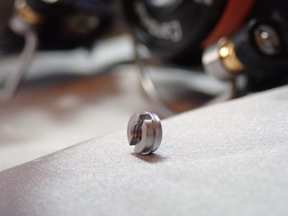 ABUカーディナルに使われる、純正比較0.5g減のラインローラー ナット・カスタムパーツです。