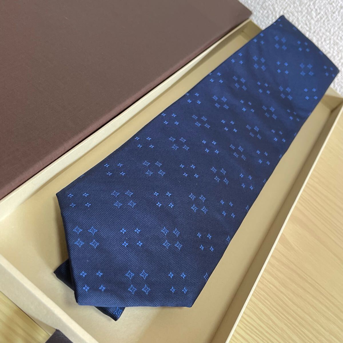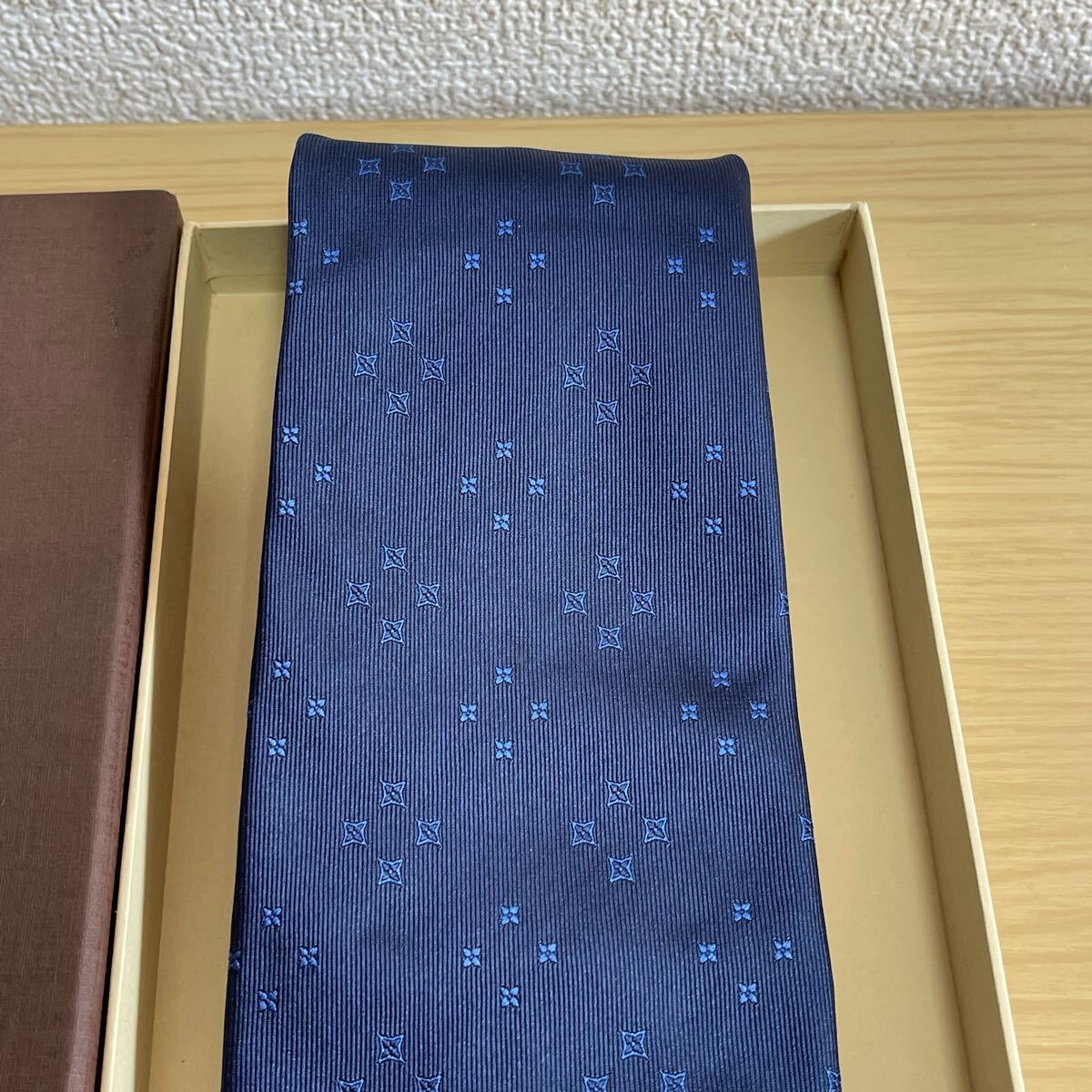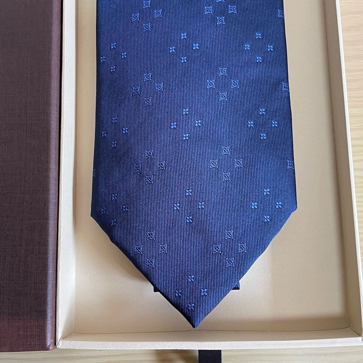 ダーク紺色ミクロ星柄ネクタイ 箱付き