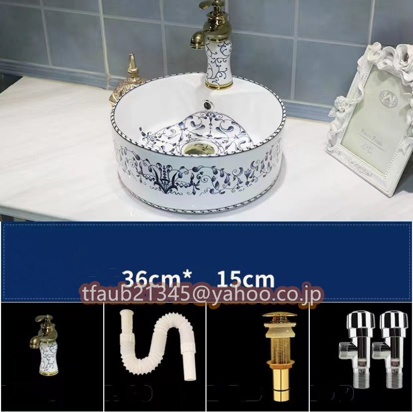 【ケーリーフショップ】北欧 洗面台 洗面ボウルセット 洗面ボール 陶器 手水鉢 手洗器 手洗い鉢 洗面器 蛇口 排水金具付き