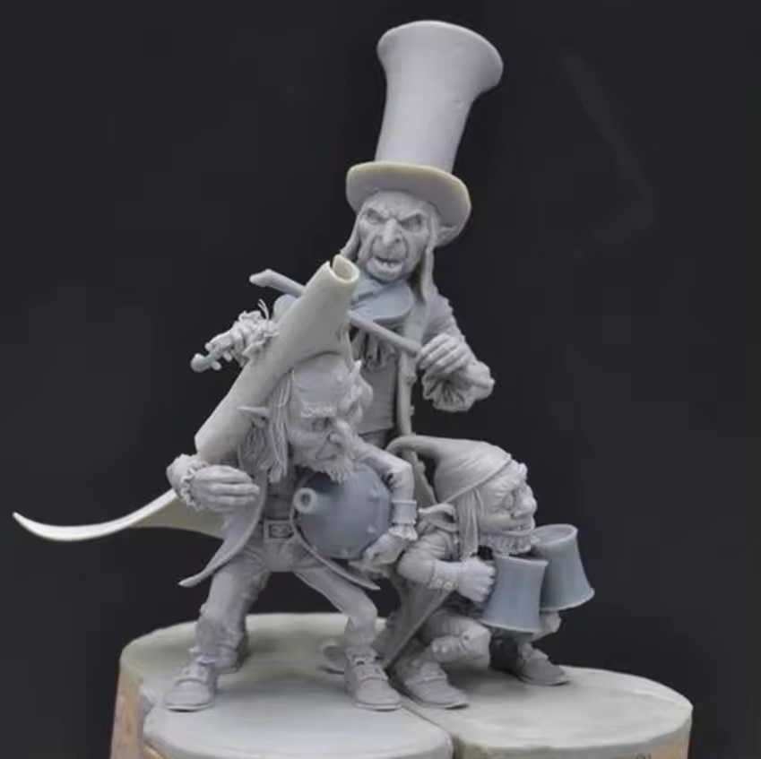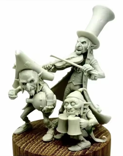 1/32 ドワーフ 小人 3人 ミニ ジオラマ 樹脂 模型 ヴァイオリン 未塗装 未組み立て レジン フィギュア キット ボグトリオ 約54mm X036