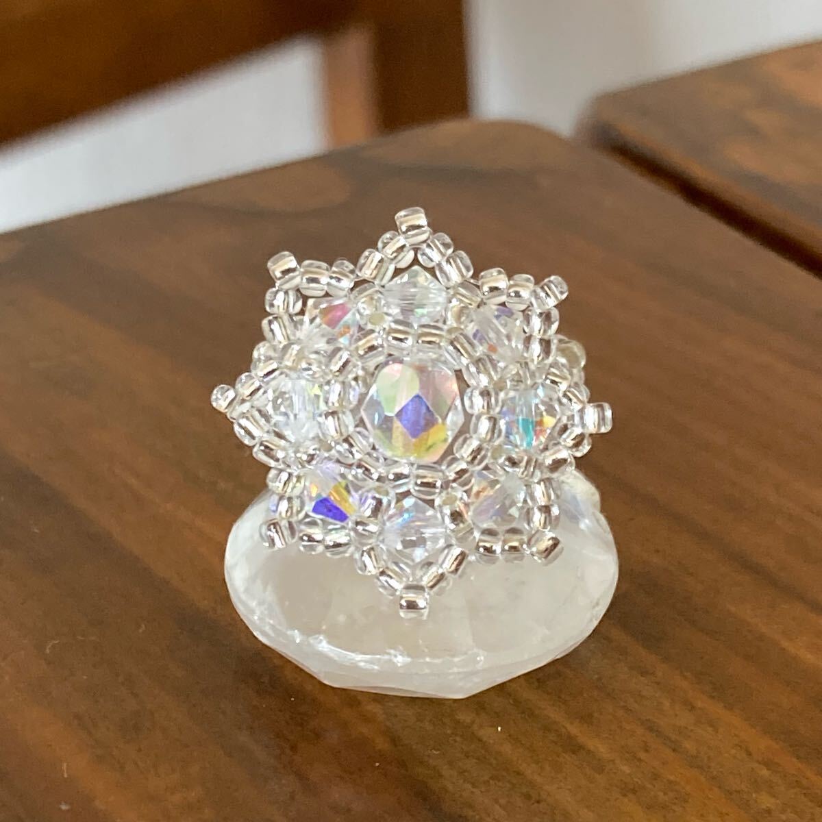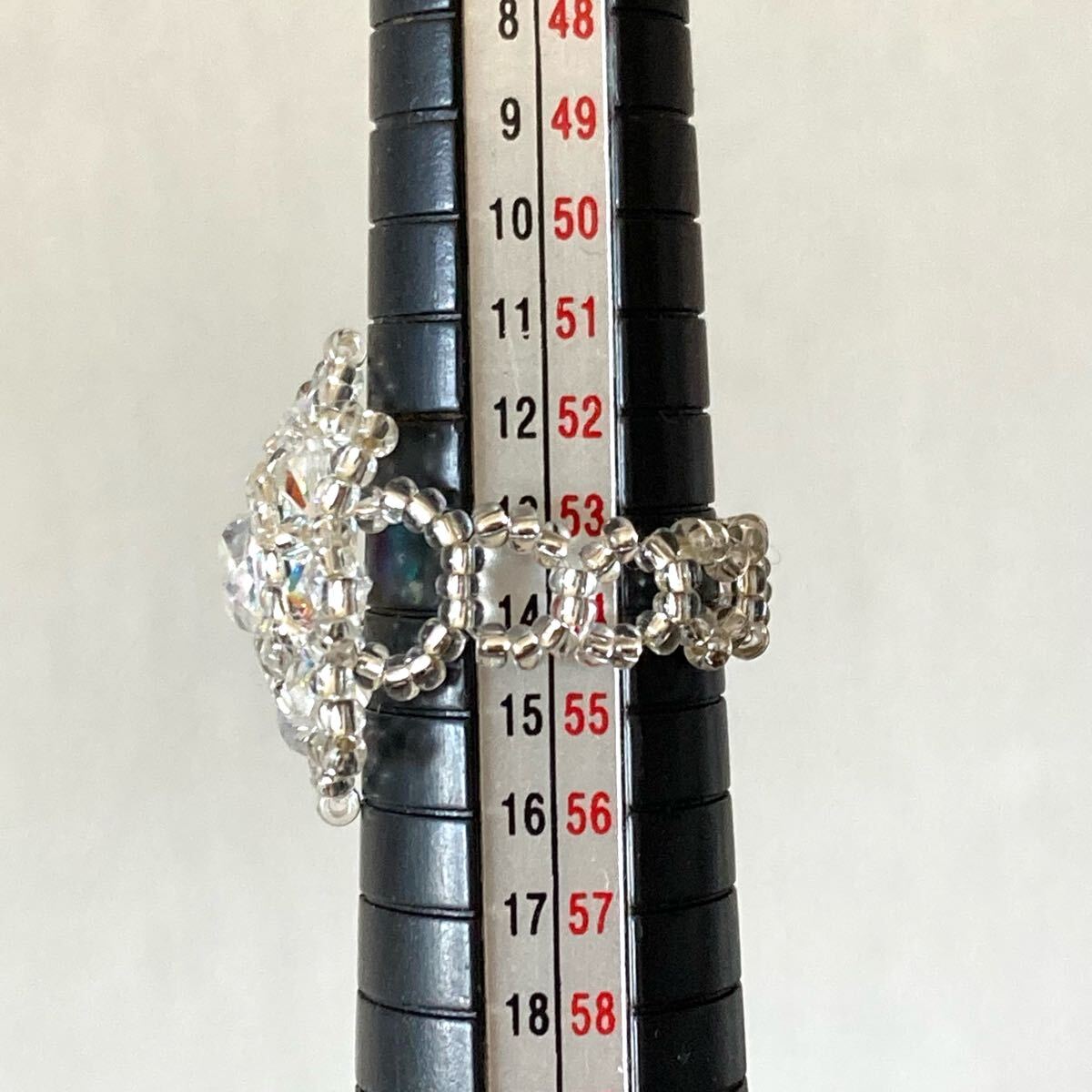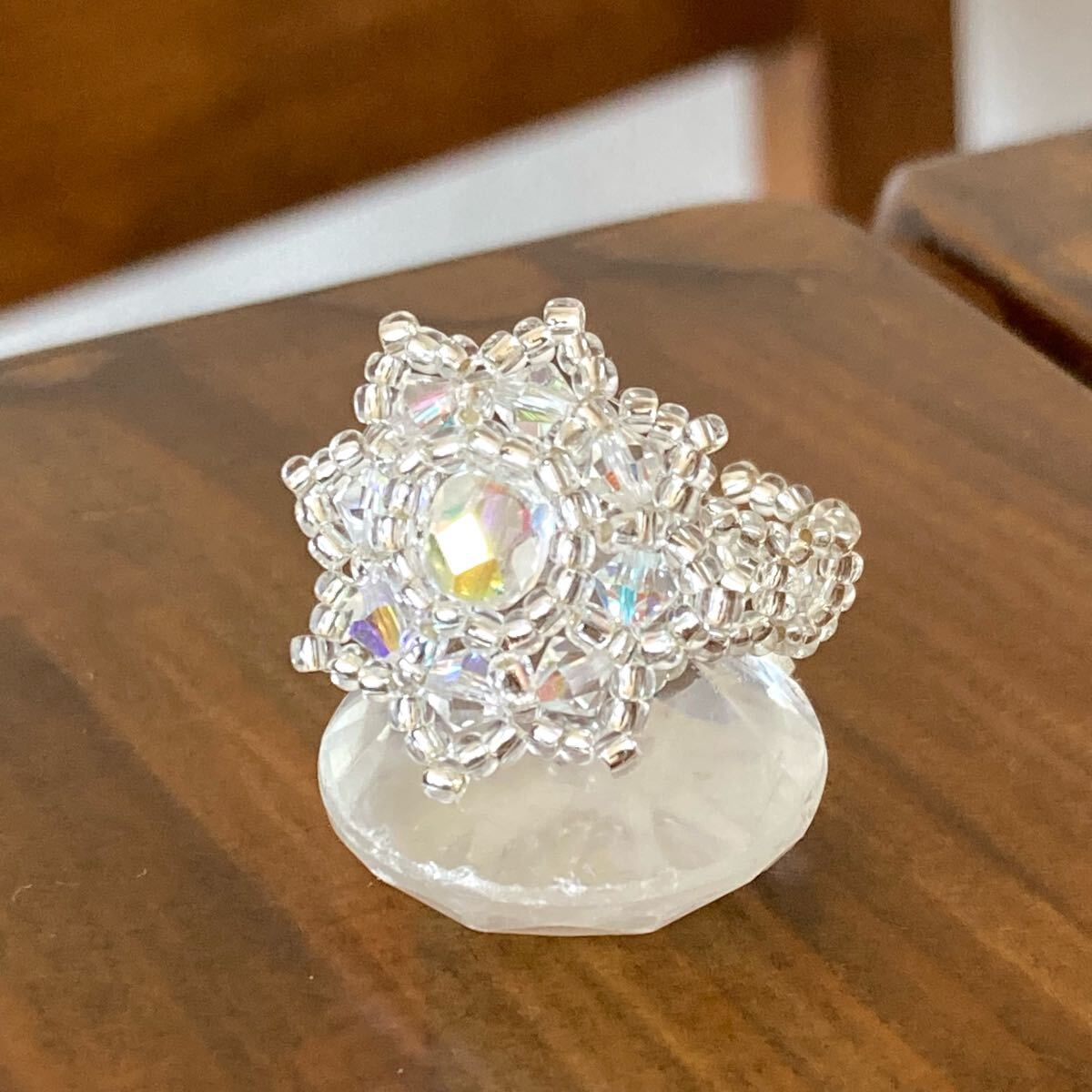 13-15号 ビーズ リング  指輪 ハンドメイド スワロフスキーの縁取りお花風リング クリアオーロラ です。
