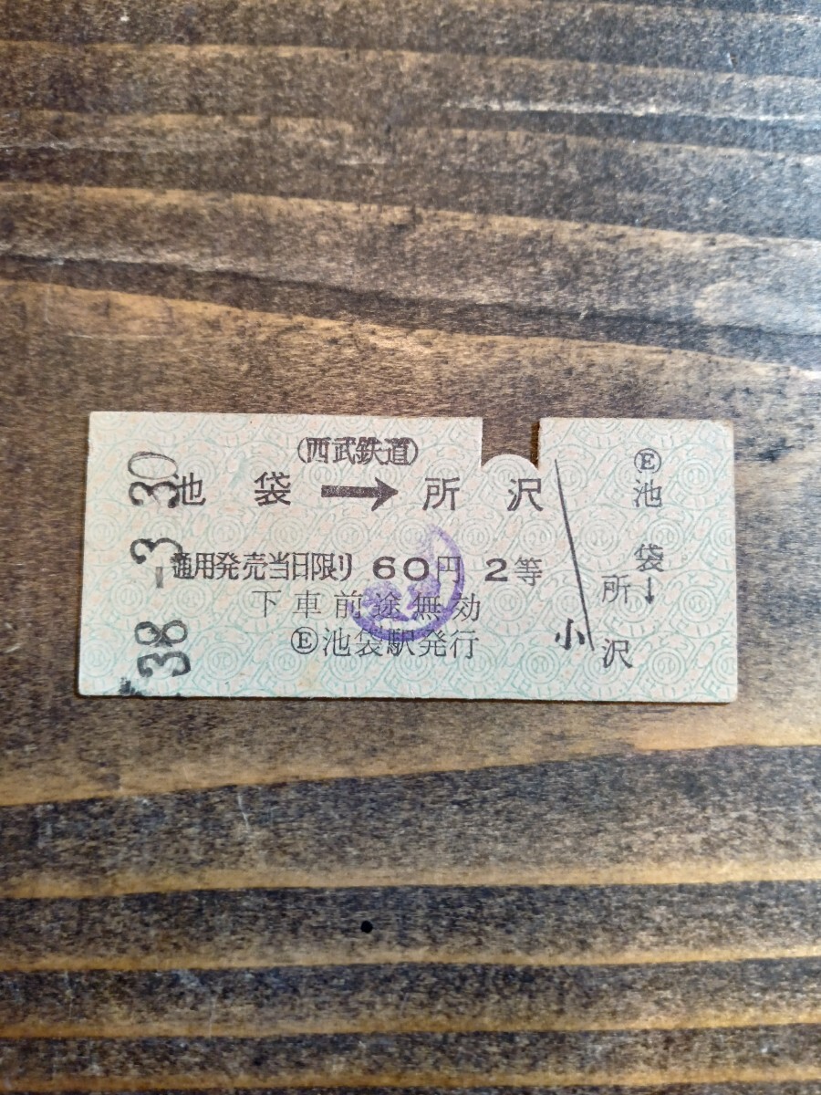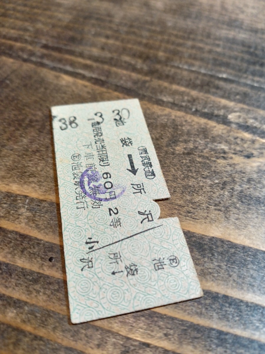 西武鉄道 B型硬券 硬券 切符 乗車券 池袋→所沢 2等 池袋駅発行 S38.3.30(鉄道資料 鉄道コレクション 古い切符)