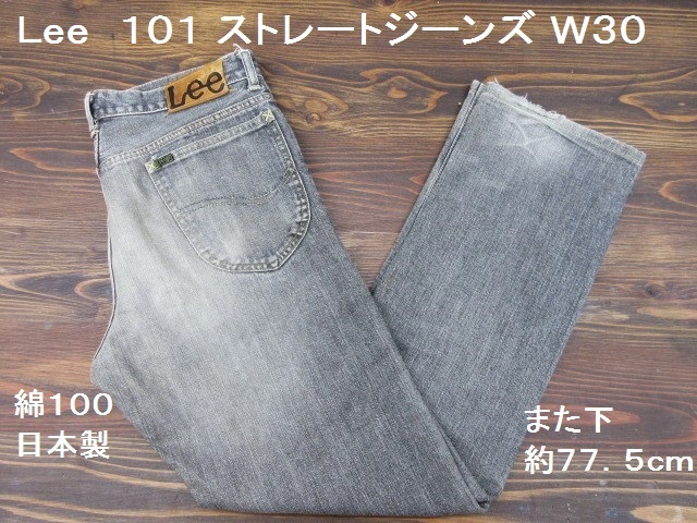 30 リー 101 ストレート ジーンズ コットン USED加工 日本製 Lee グレー系 綿100%(ウエスタン デニム エドウィン