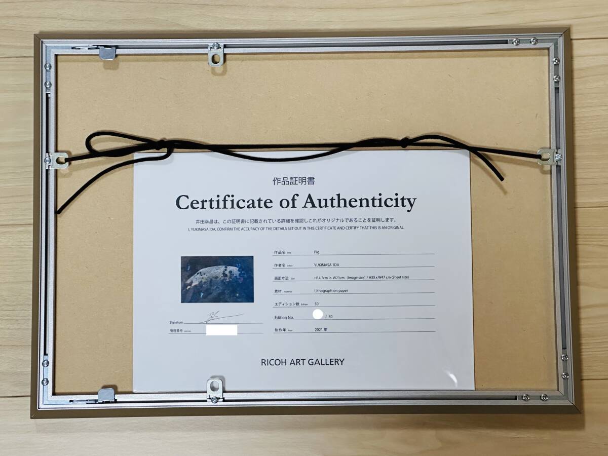 また、購入時に作品とともに送られてきた証明書もおつけします。