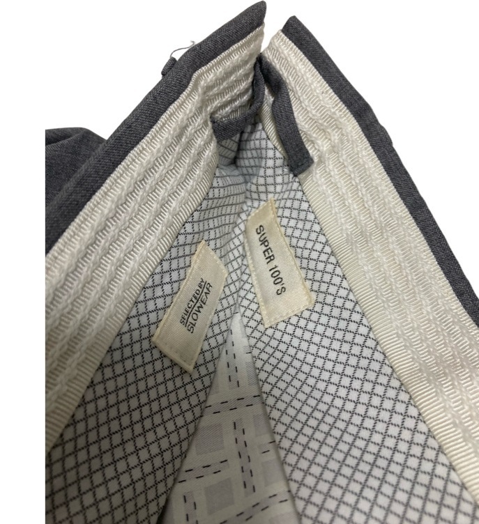 生地は平織りのギャバジンなどと見られる上質なウール地で、Super100'Sで主に春夏秋にかけて着用いただけます。