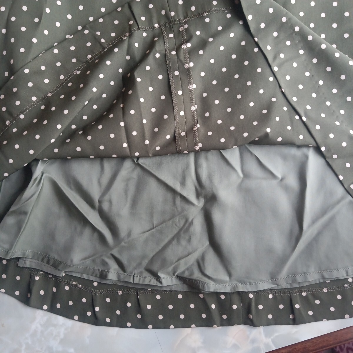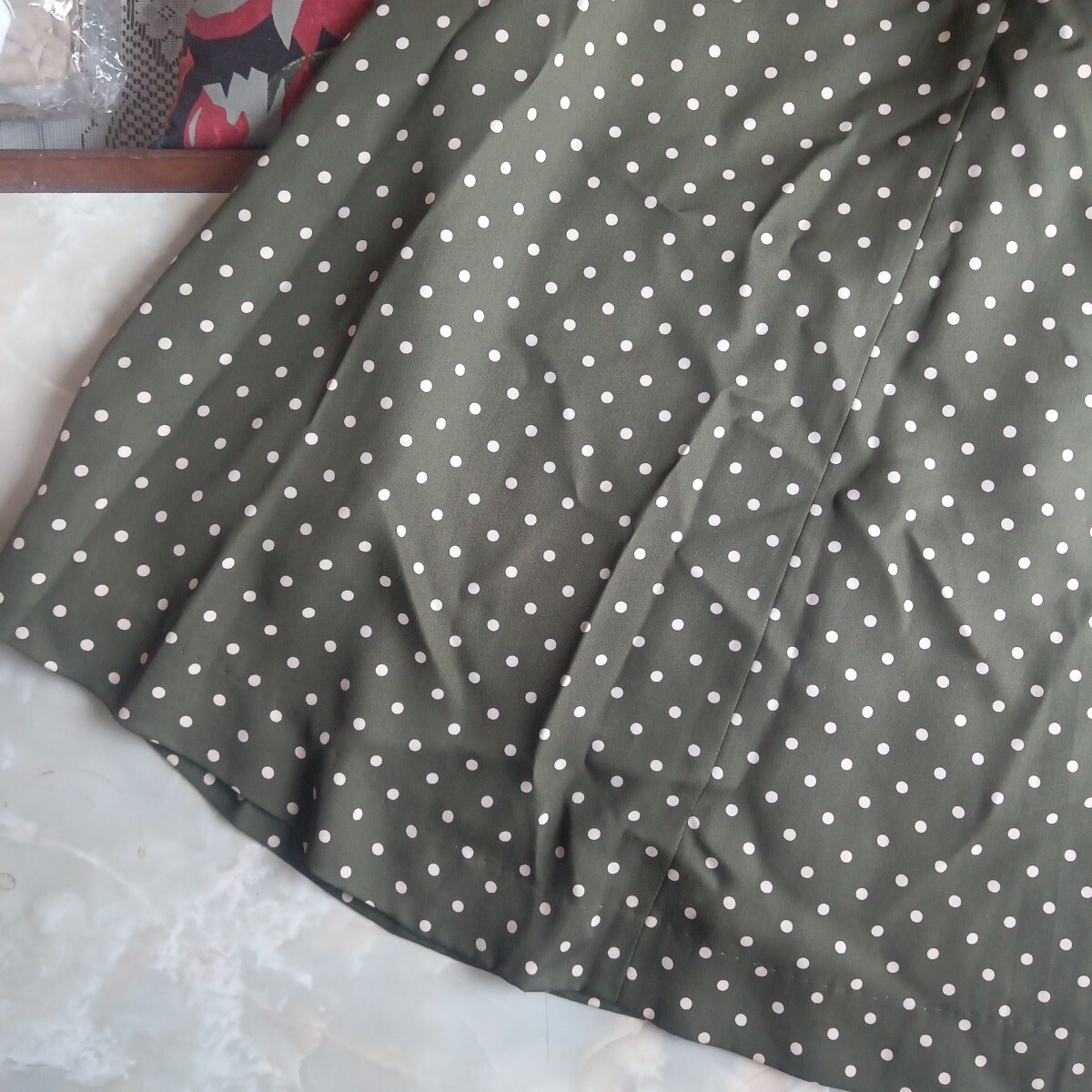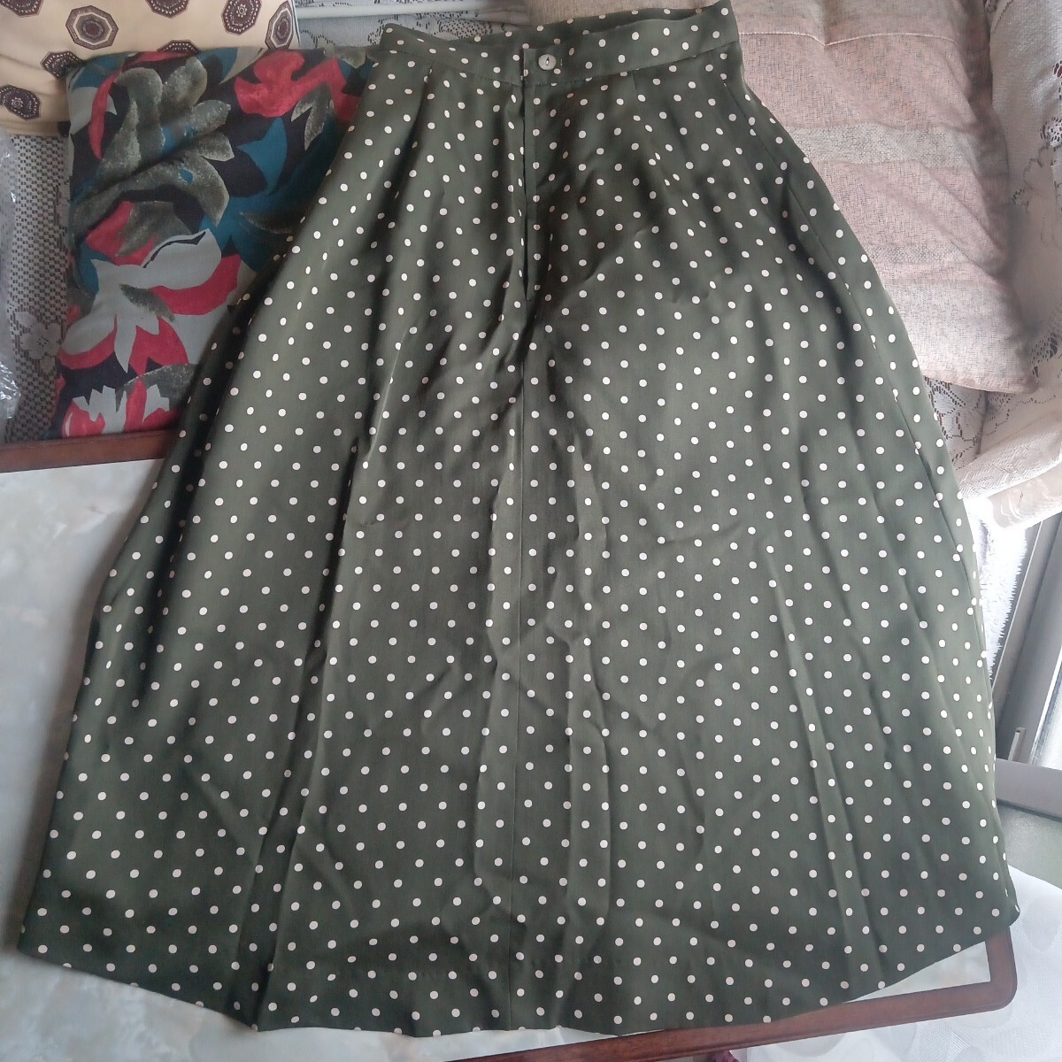 カーキ 水玉 ロングスカート フレアスカート
