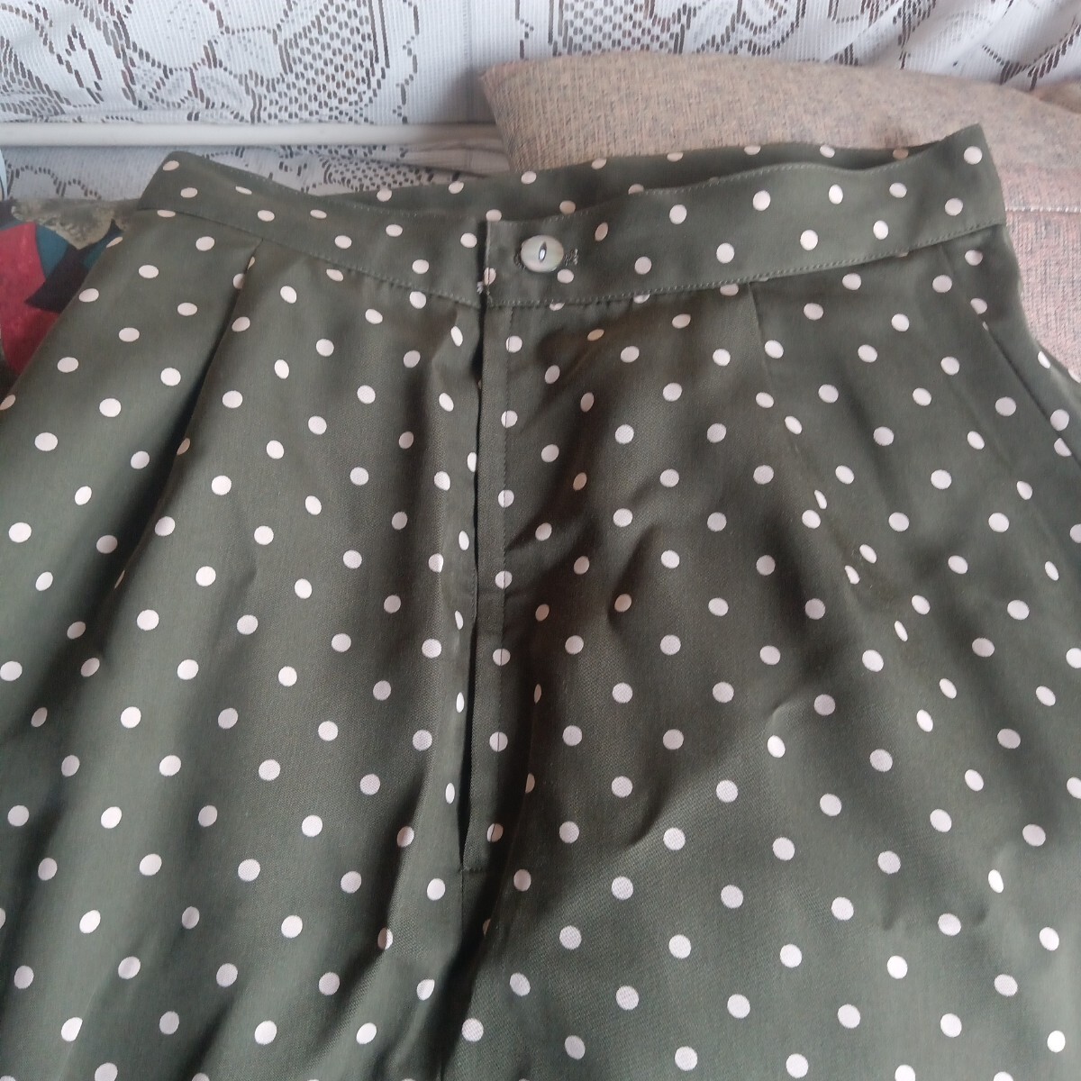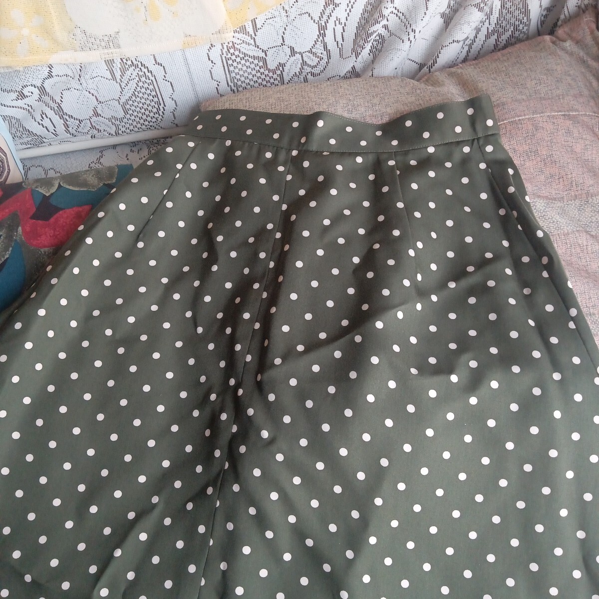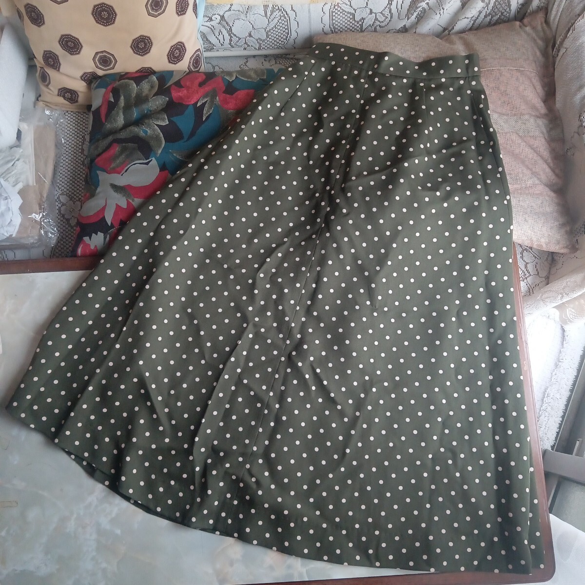 カーキ 水玉 ロングスカート フレアスカート