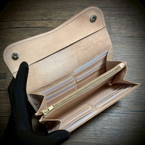 革は肉厚のあるヌメ革ですが程よい硬さで