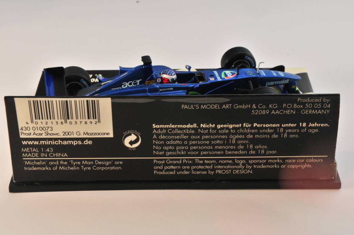 | 商品説明 | 【商品名】 MINICHAMPS PROST ACER SHOWCAR 2001 G.MAZZACANE ミニチャンプス プロスト ショーカー G.マッツァカーネ 1/43 【状態】 購入後 暗室にて保管(未展示)モデルの状態は、良好だと思いますが、 製造過程からの個体差,経年による台紙のヤケ、デカール剥がれ、 クリアーケースのスリ傷等は、ご了承下さい。 |