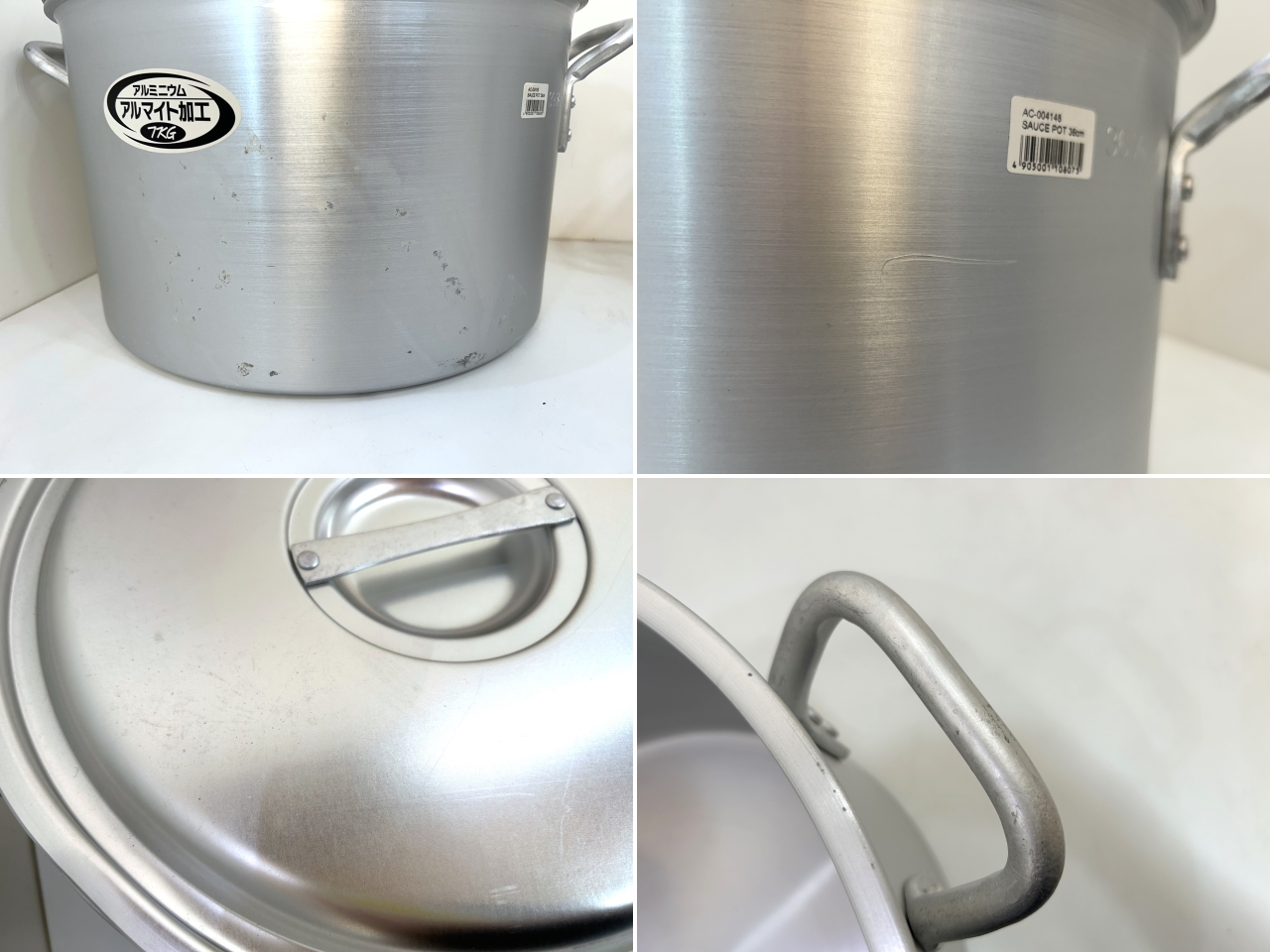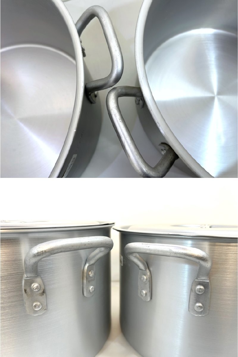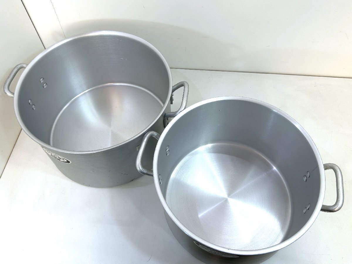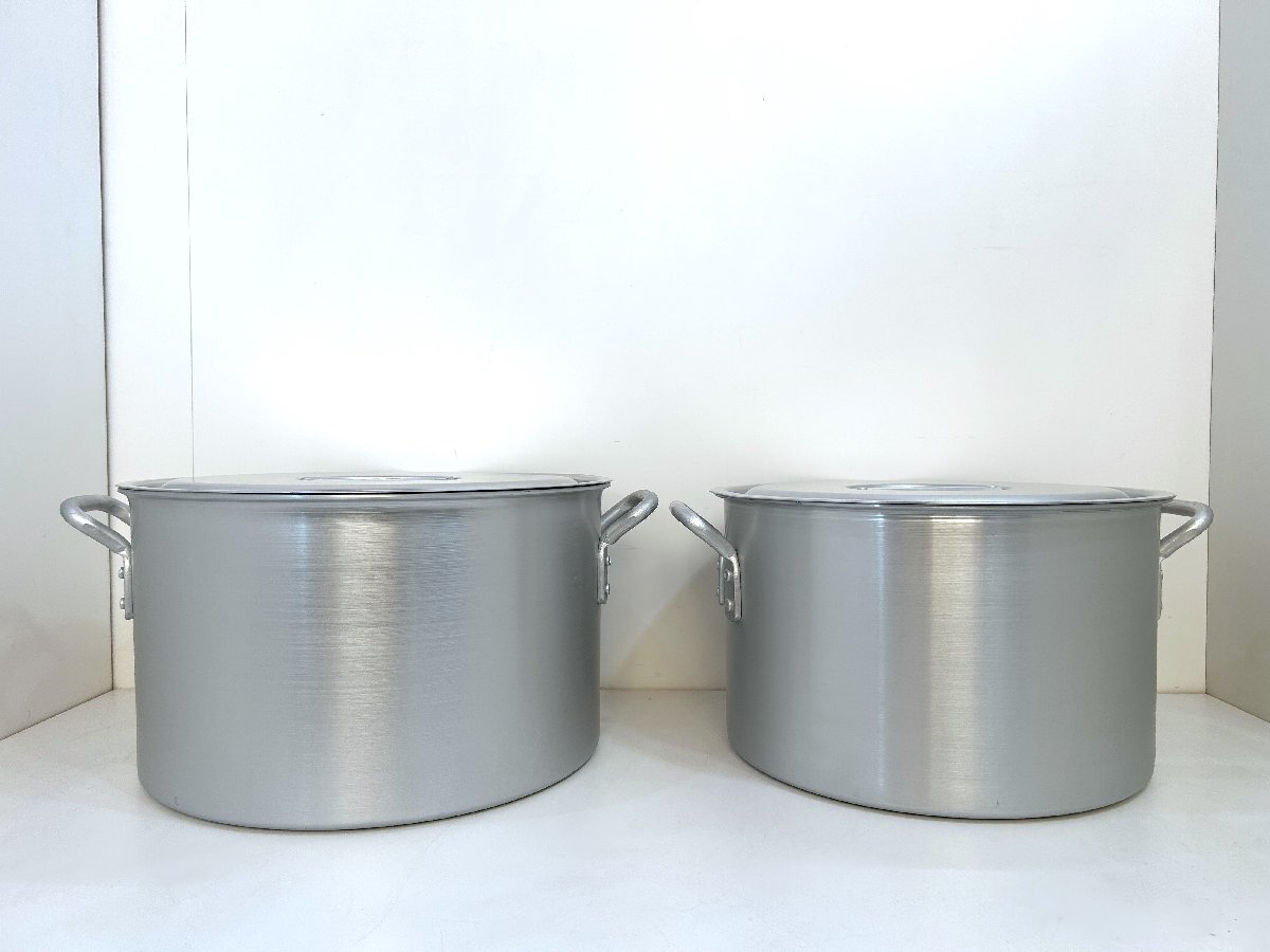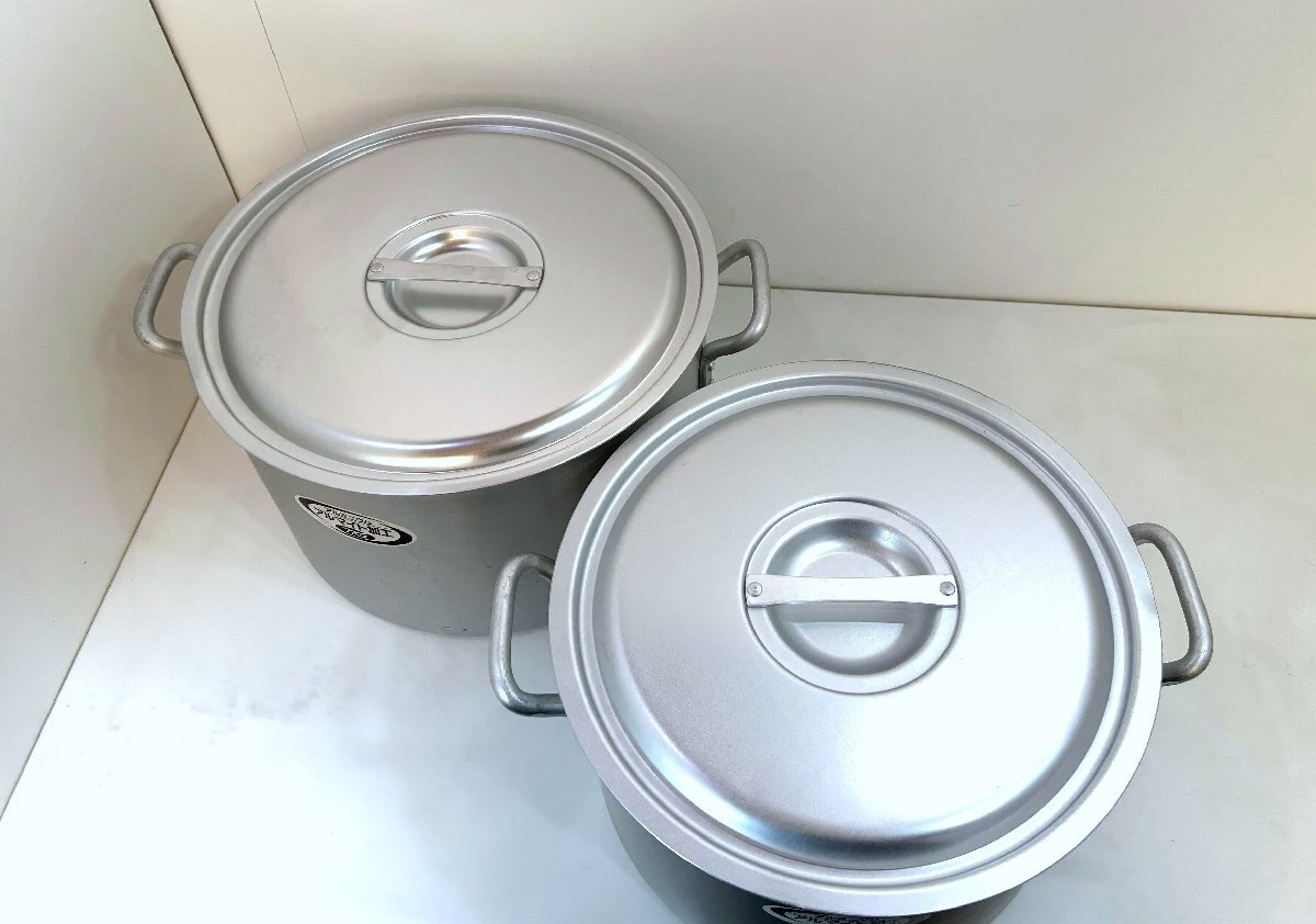 こちらは 遠藤商事 の 寸胴鍋 2点セット (36cm・39cm)です。 未使用品です。 TKG/アルミニウム 業務用鍋シリーズ アルマイト加工でキズに強く、扱いやすく、お手入れ簡単なプロ仕様の鍋です。 食材によって侵食されることのないアルマイト皮膜層ですので、扱いやすくお手入れが簡単になります。 目盛り付きです。 ![]() ![]() 【 コンディション 】 未使用品ですが、保管品のため、多少のサビやキズ等がありますが、内部は綺麗な状態です。 ビニール袋には経年によるダメージがあります。 ![]() レストランや、料亭などで! この機会に是非いかがでしょうか。 皆様のご入札をお待ちしております! 再良市場の他のお品物はこちらから!