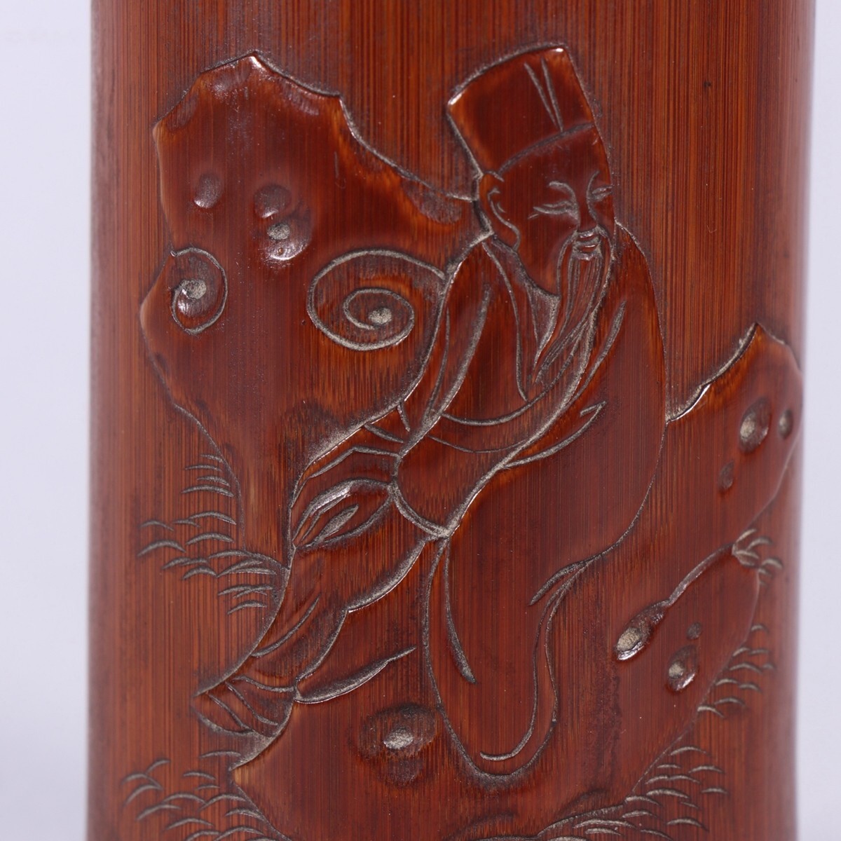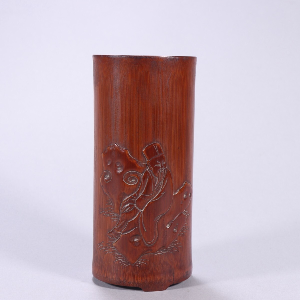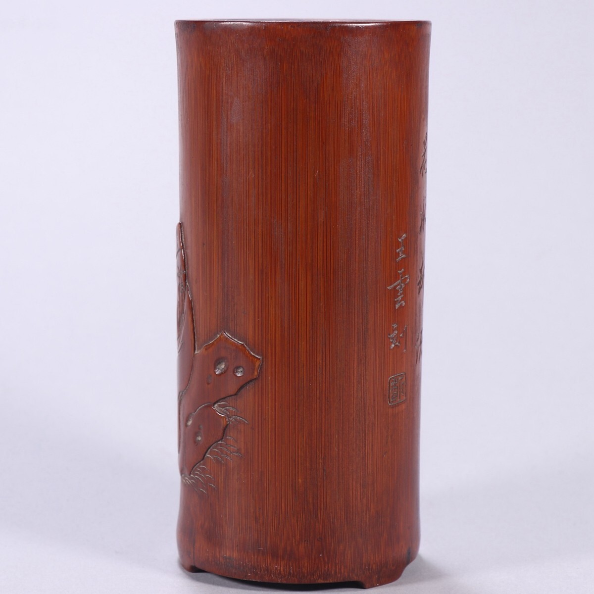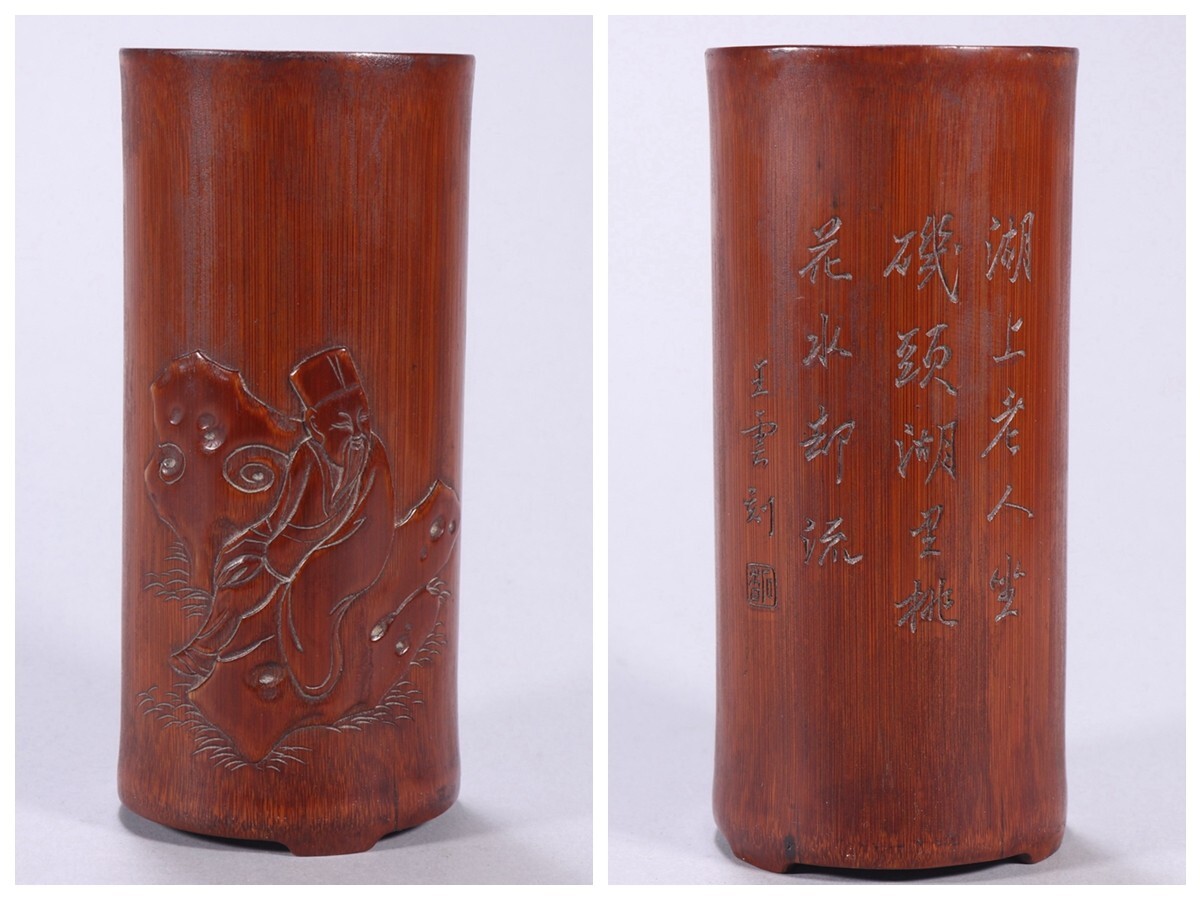 清時代 老竹彫 人物故事筆筒 王雲銘【仁】手彫り 文房具 書道具 中国古美術 蔵出