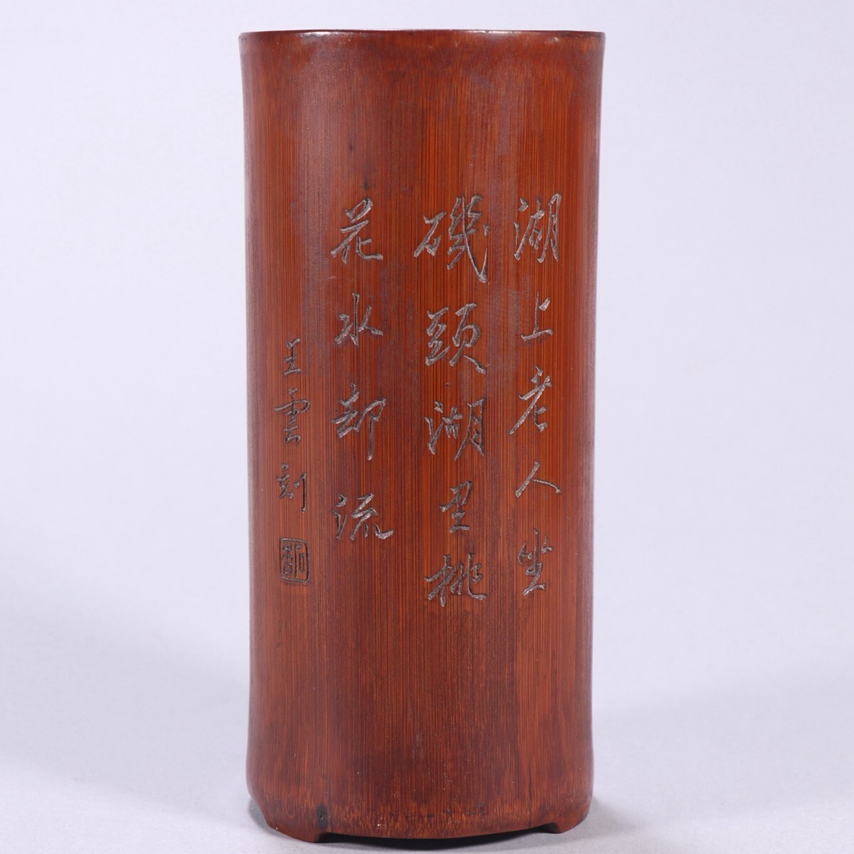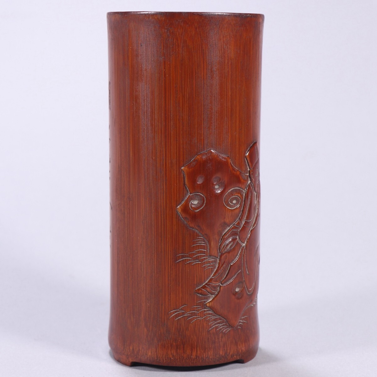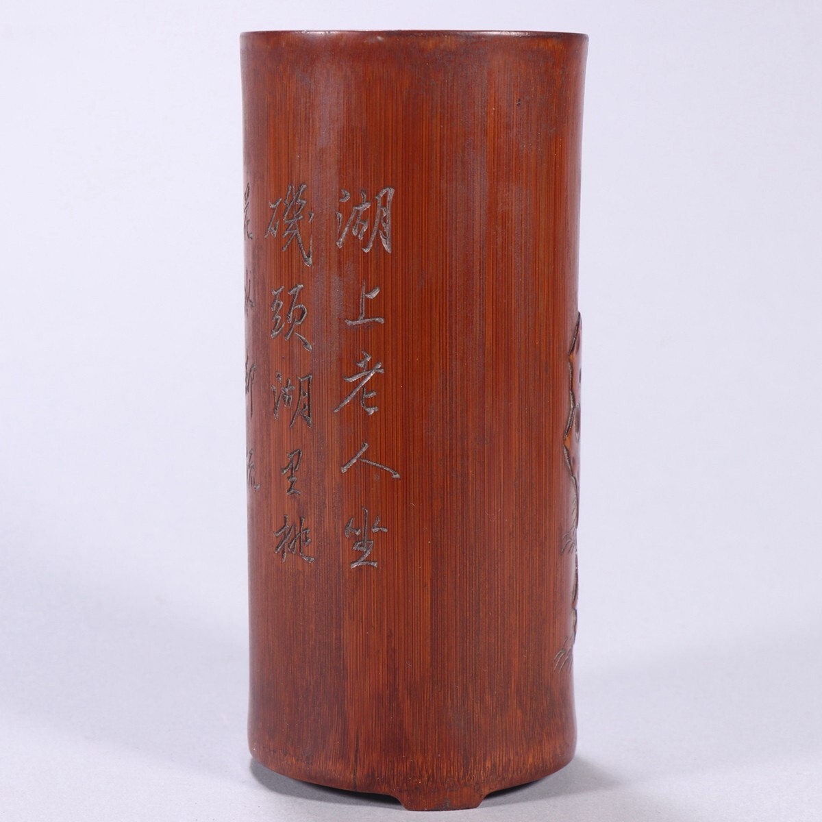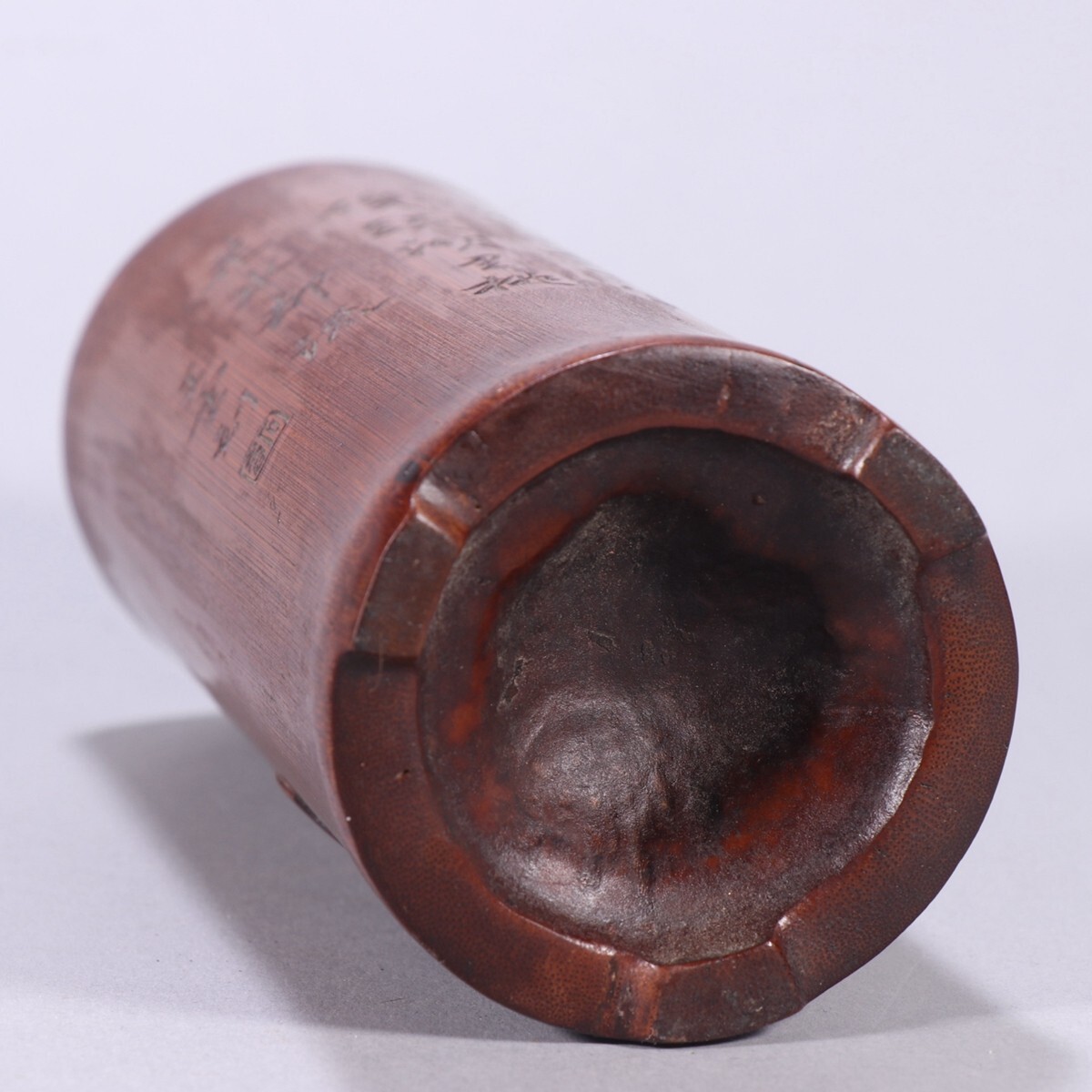 清時代 老竹彫 人物故事筆筒 王雲銘【仁】手彫り 文房具 書道具 中国古美術 蔵出