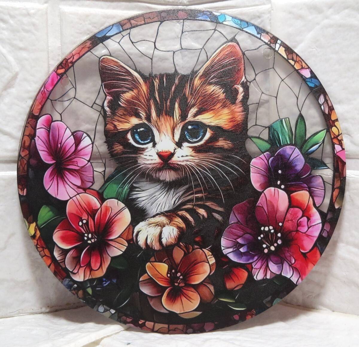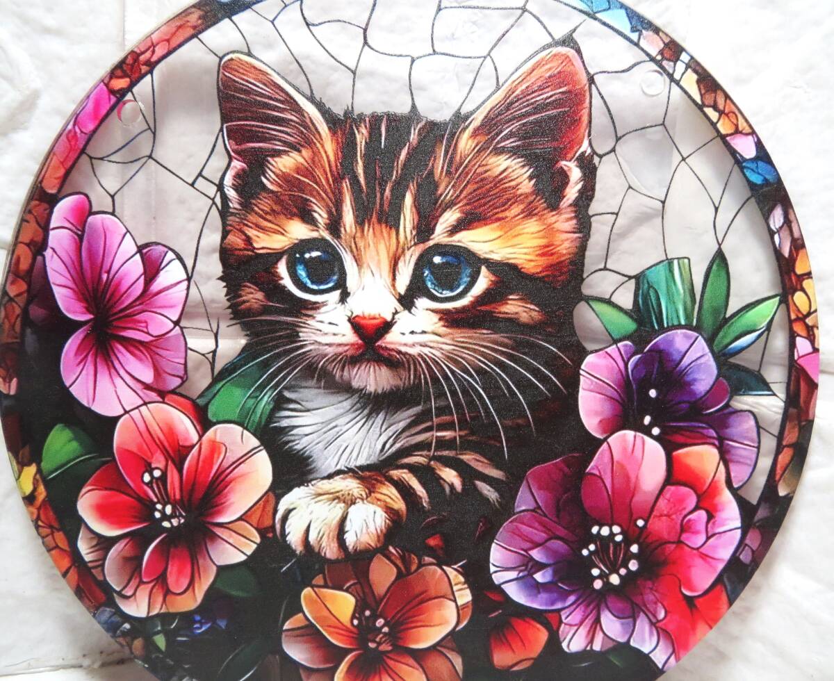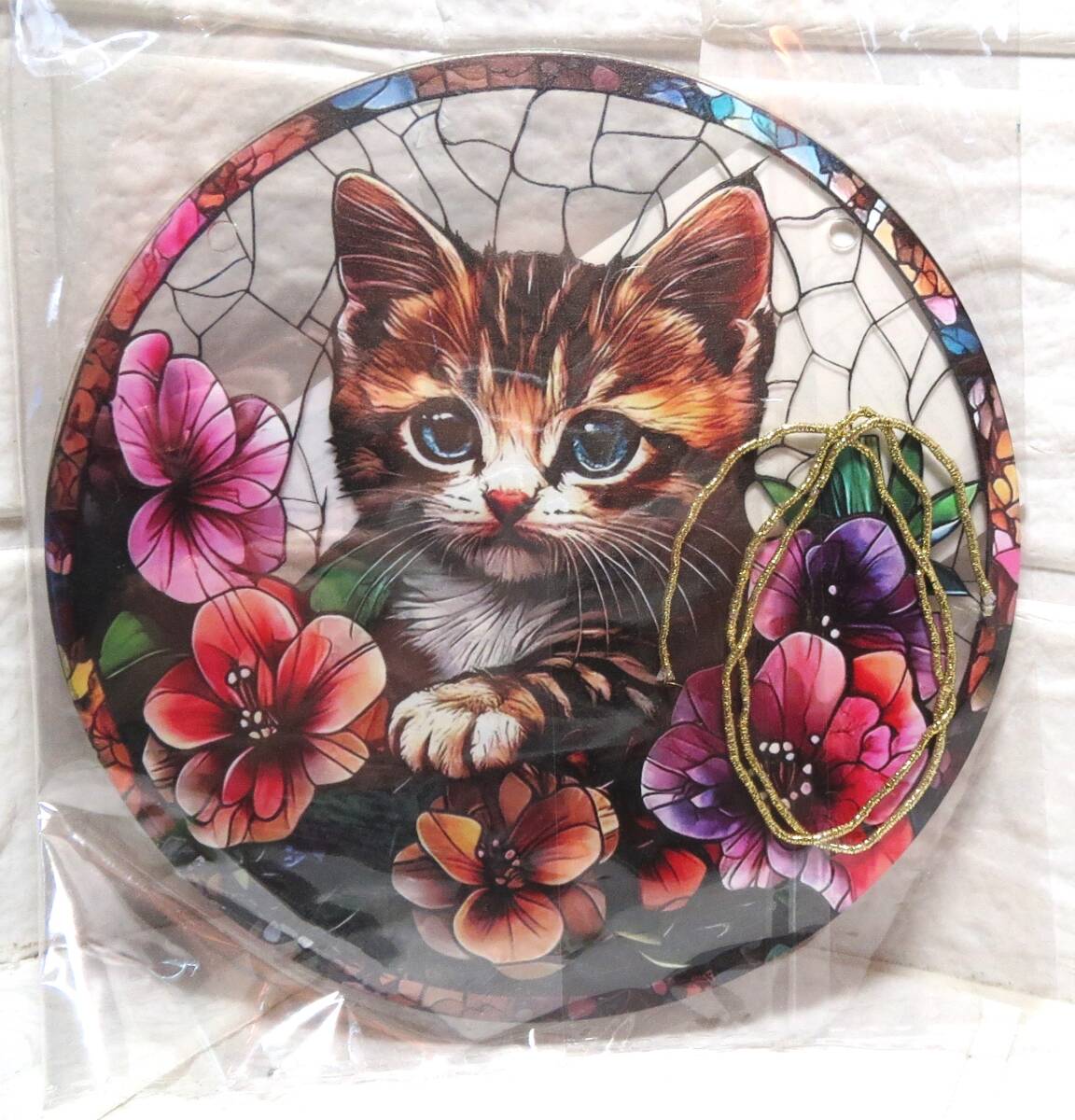 新品・サンキャッチャー・かわいい子猫・小ぶり・玄関扉のアクセント・窓際のサンキャッチャーに・100均の皿台を使って置物にしても