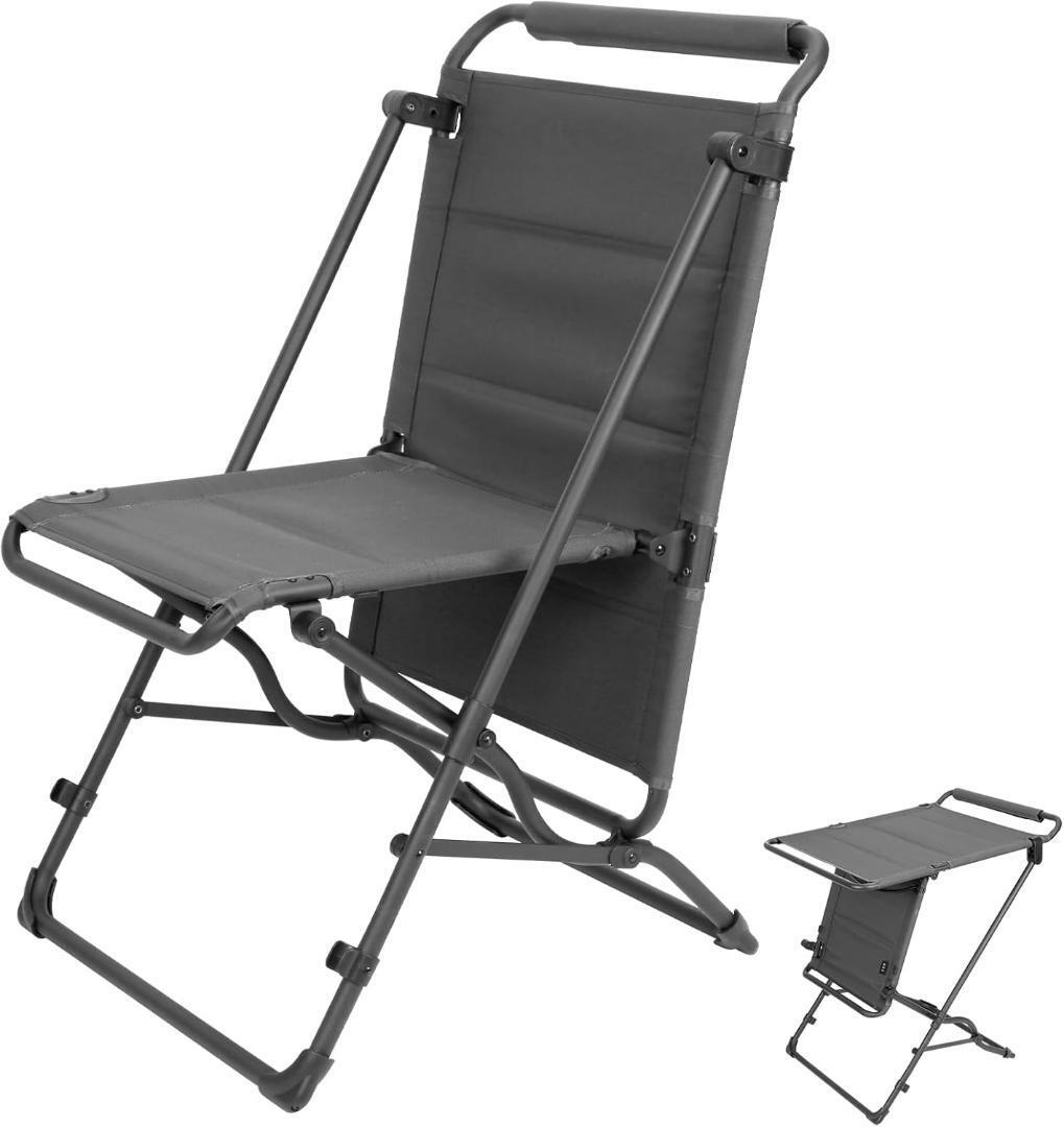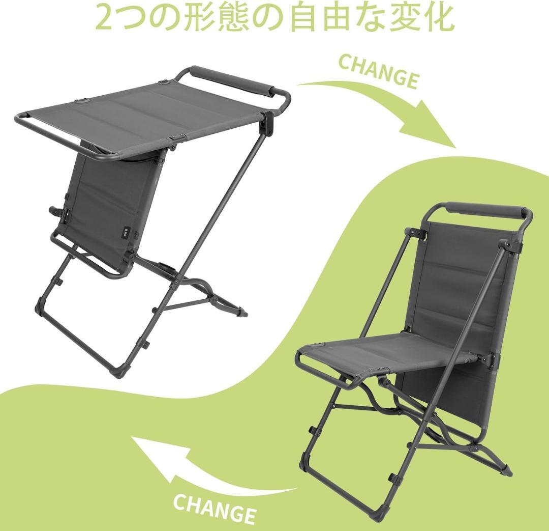 【超軽量、超便利】 ①アルミ合金の軽量材でわずか320gの重さ、ペットボトル天然水1本よりも軽い!鋼材の類似商品より60%軽い! ②1秒でパット展開、収納も簡単、更に収納袋と椅子一体型、収納袋もいらない!