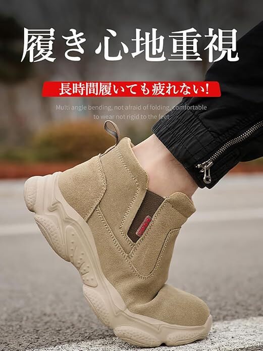 安全靴 あんぜん靴 ハイカット メンズ 作業靴 紐なし 軽量 溶接用 先芯入り 耐熱 耐火 耐水 耐摩耗 サイズ:25.5cm