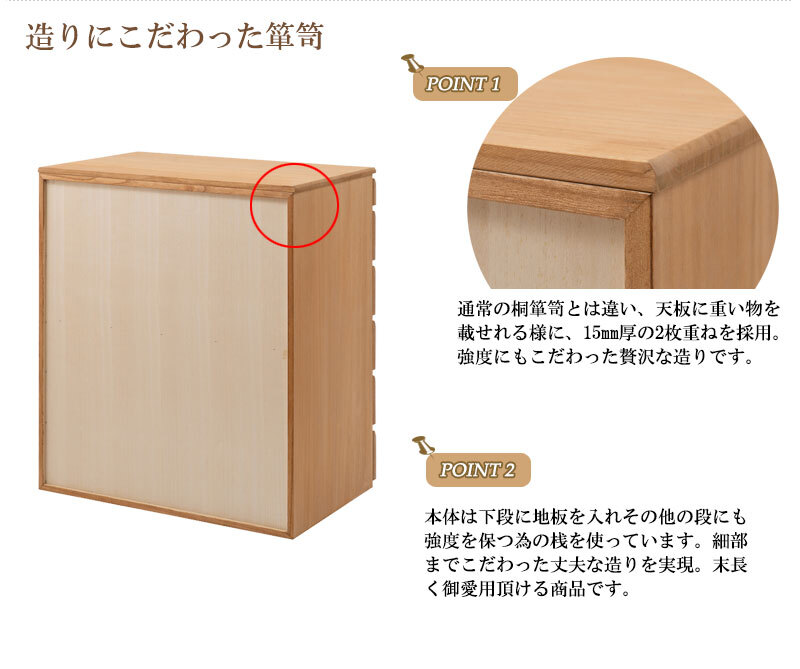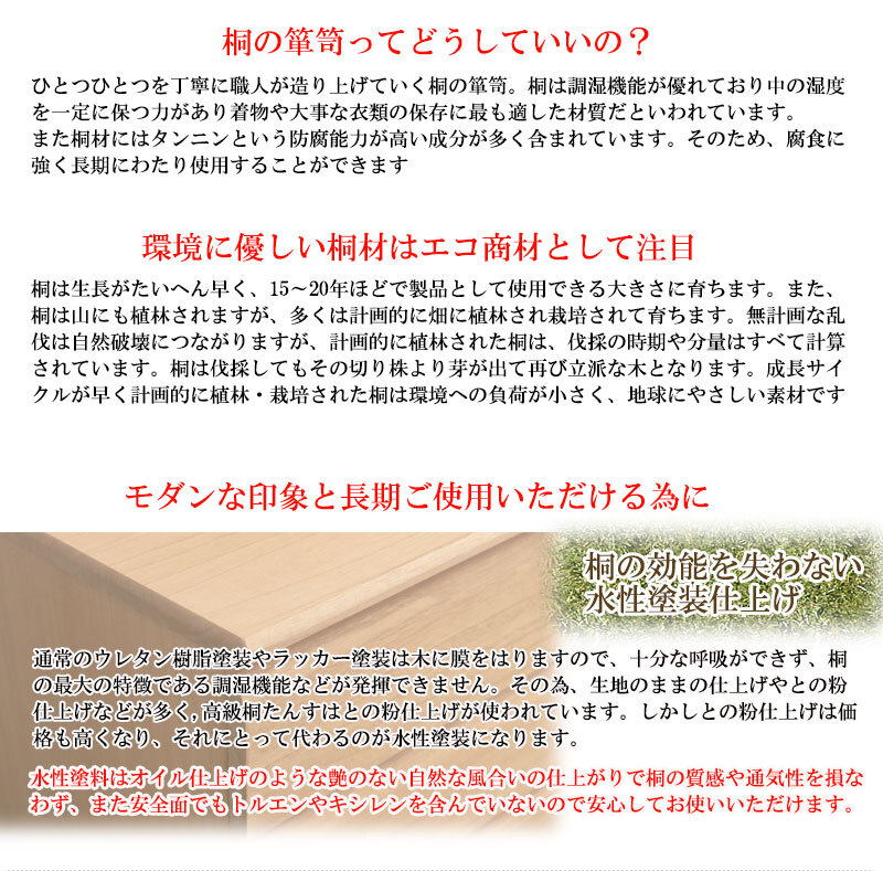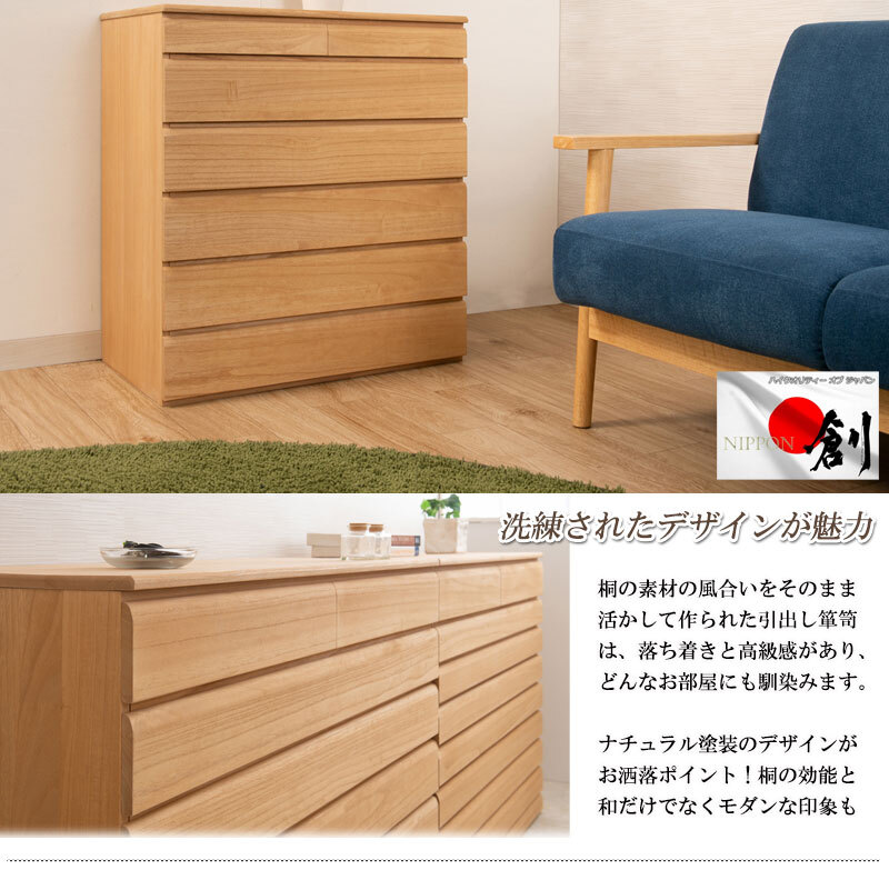 ■商品の仕様/本体:天然木桐材(水性塗装)、引出し底板・背板:天然木桐化粧板