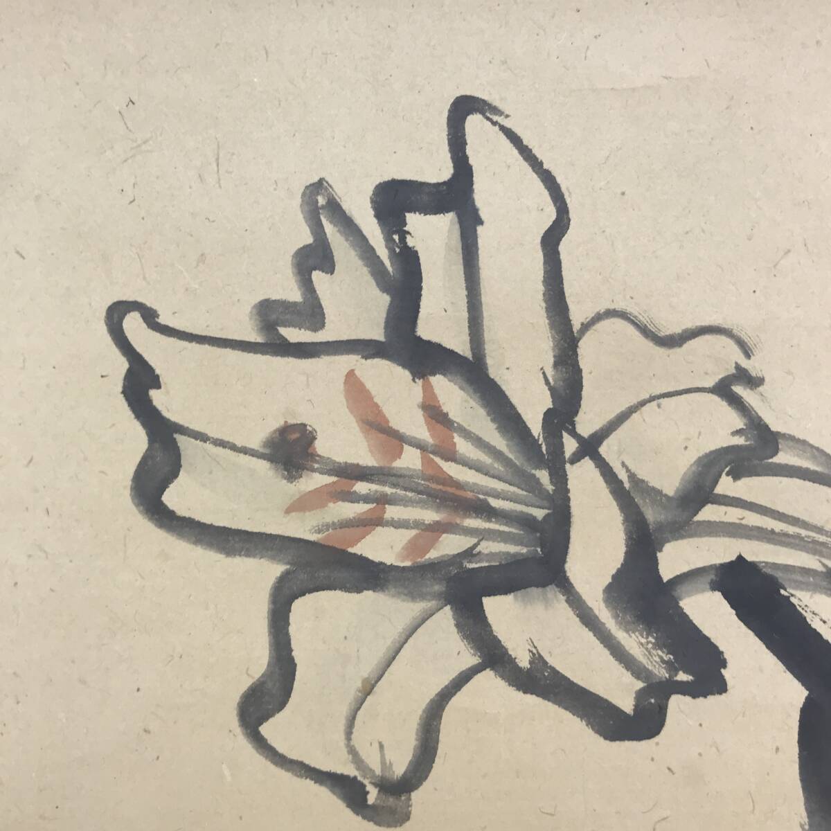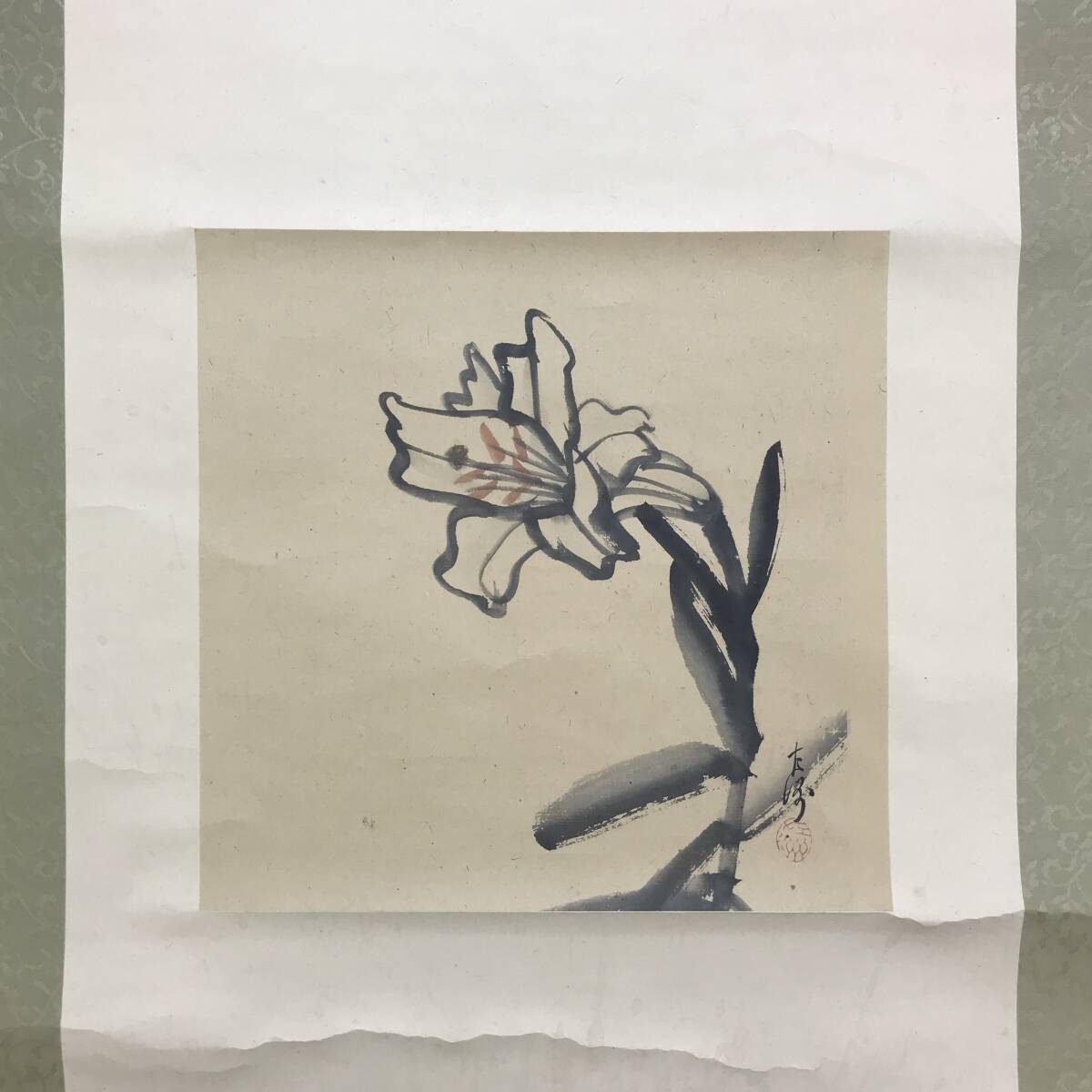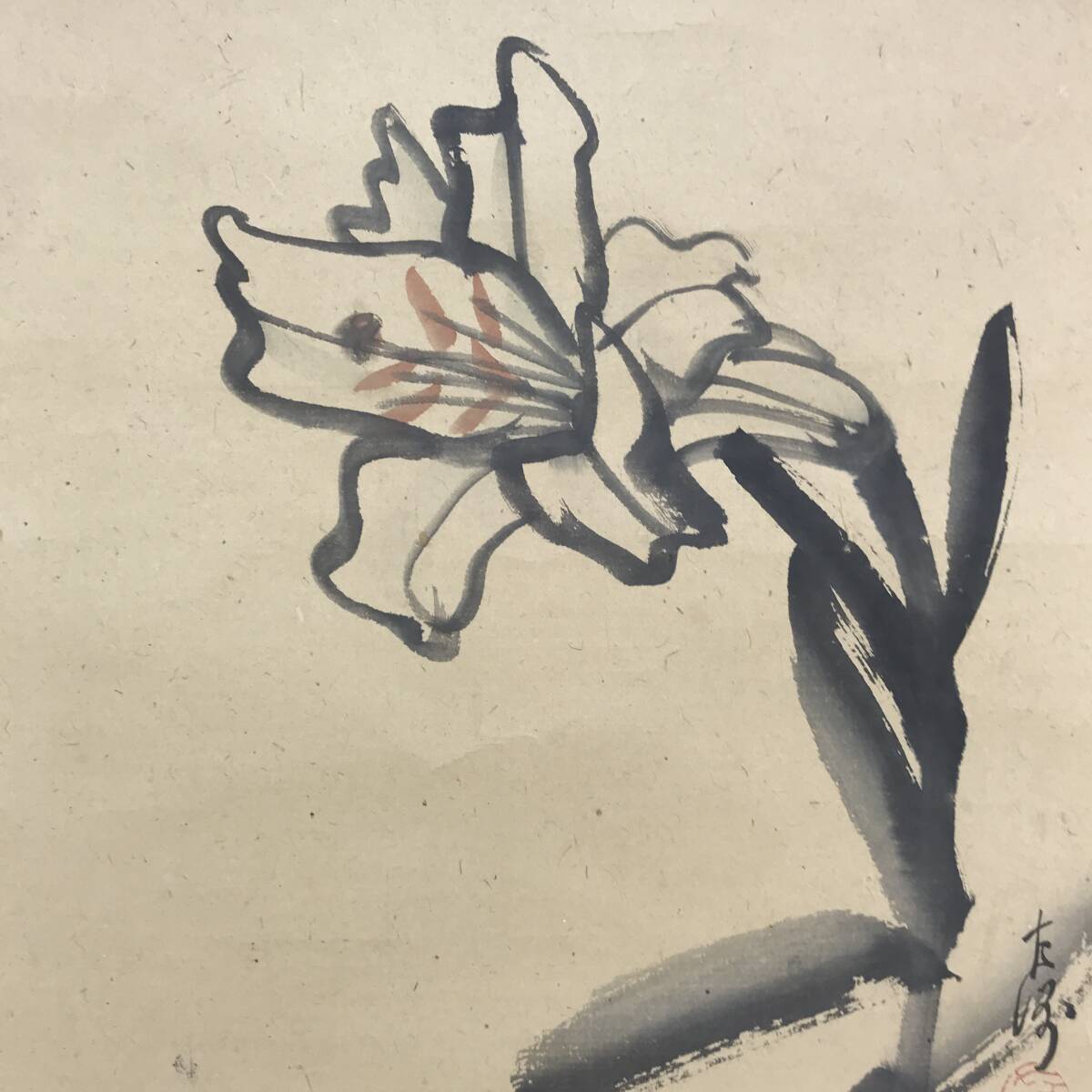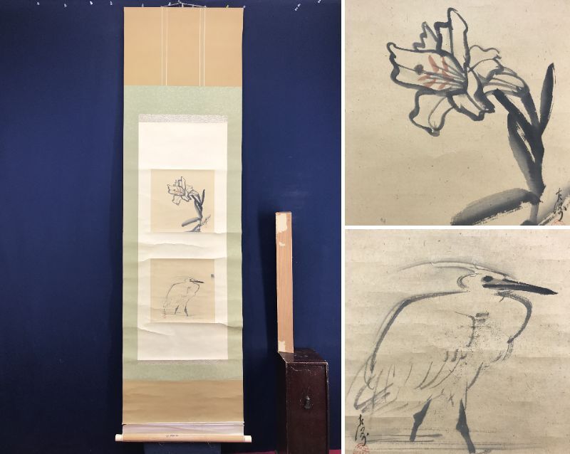 真作/中村左州/百合図/白鷺図/花鳥図/花図/鳥図/掛軸☆宝船☆AJ-45