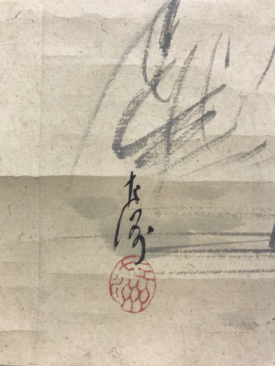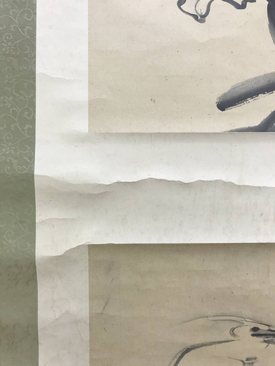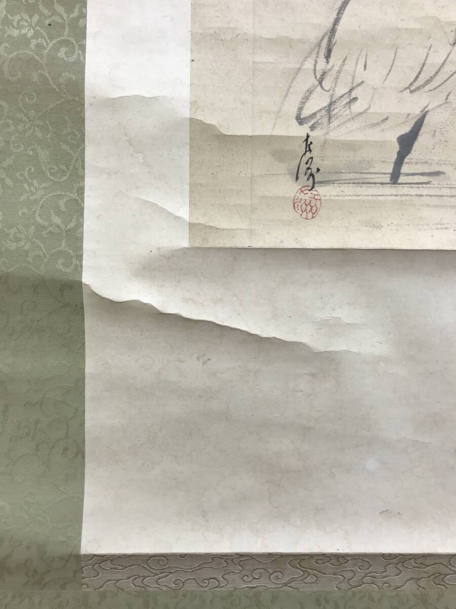 【作品状態】 本紙は紙本肉筆です。本紙は薄汚れ、多少の汚れシミ、小シワあります。表装は最下部に補修痕、多数の折れ、巻シワあります。