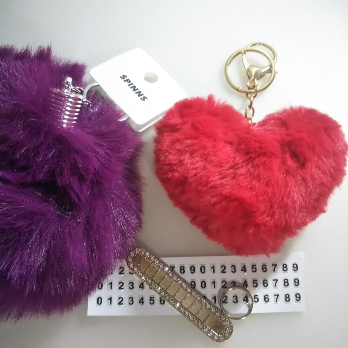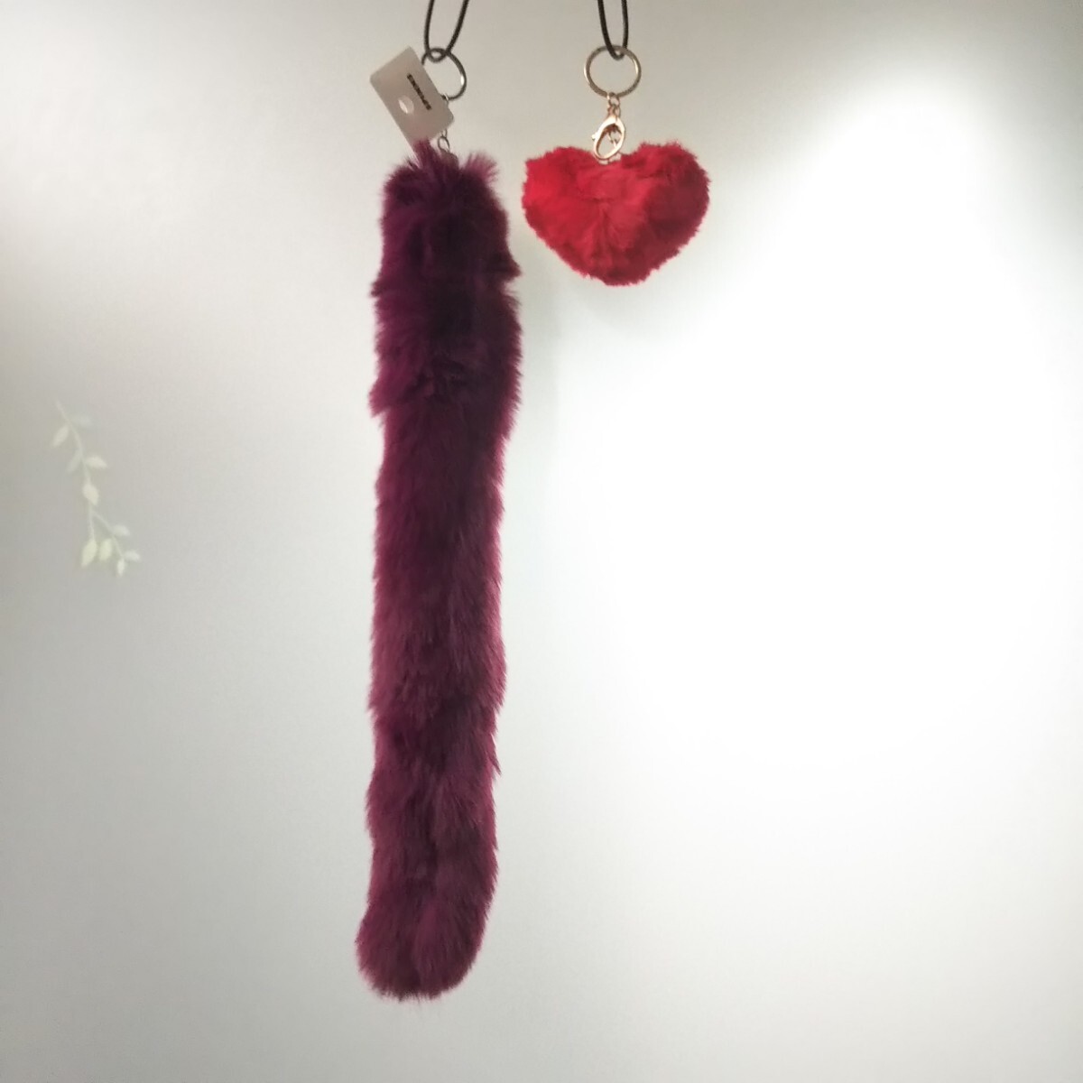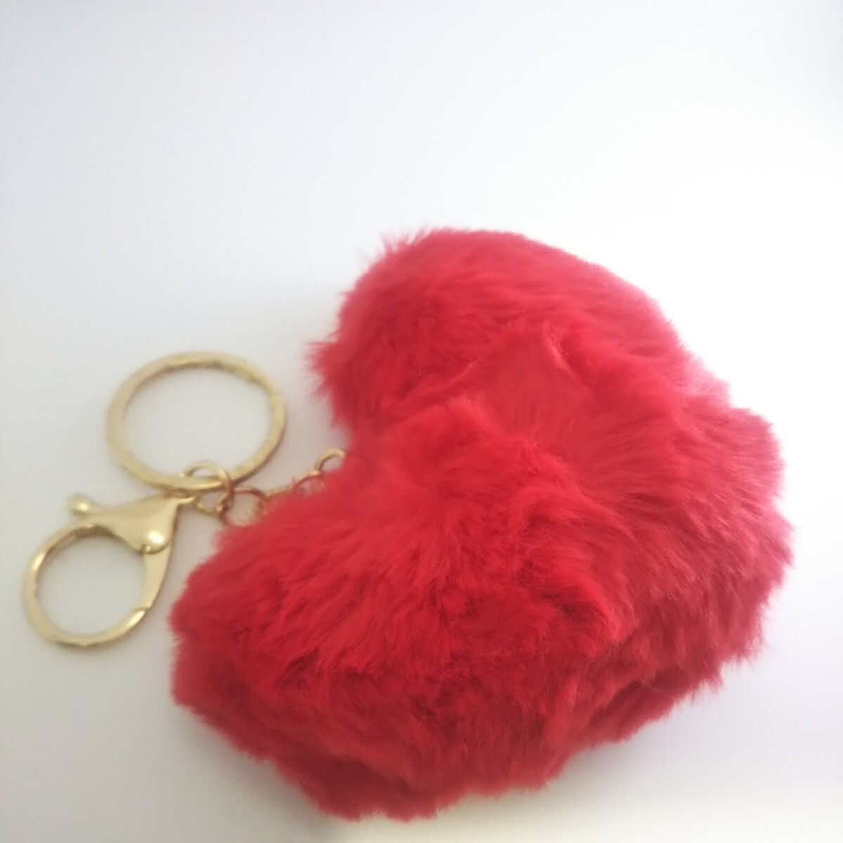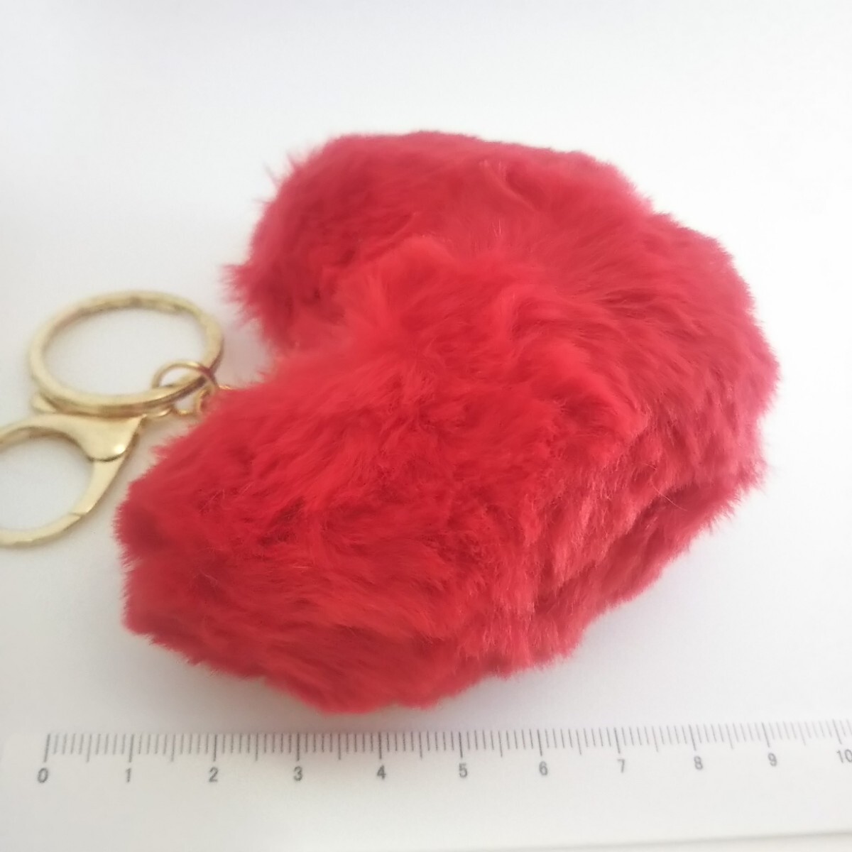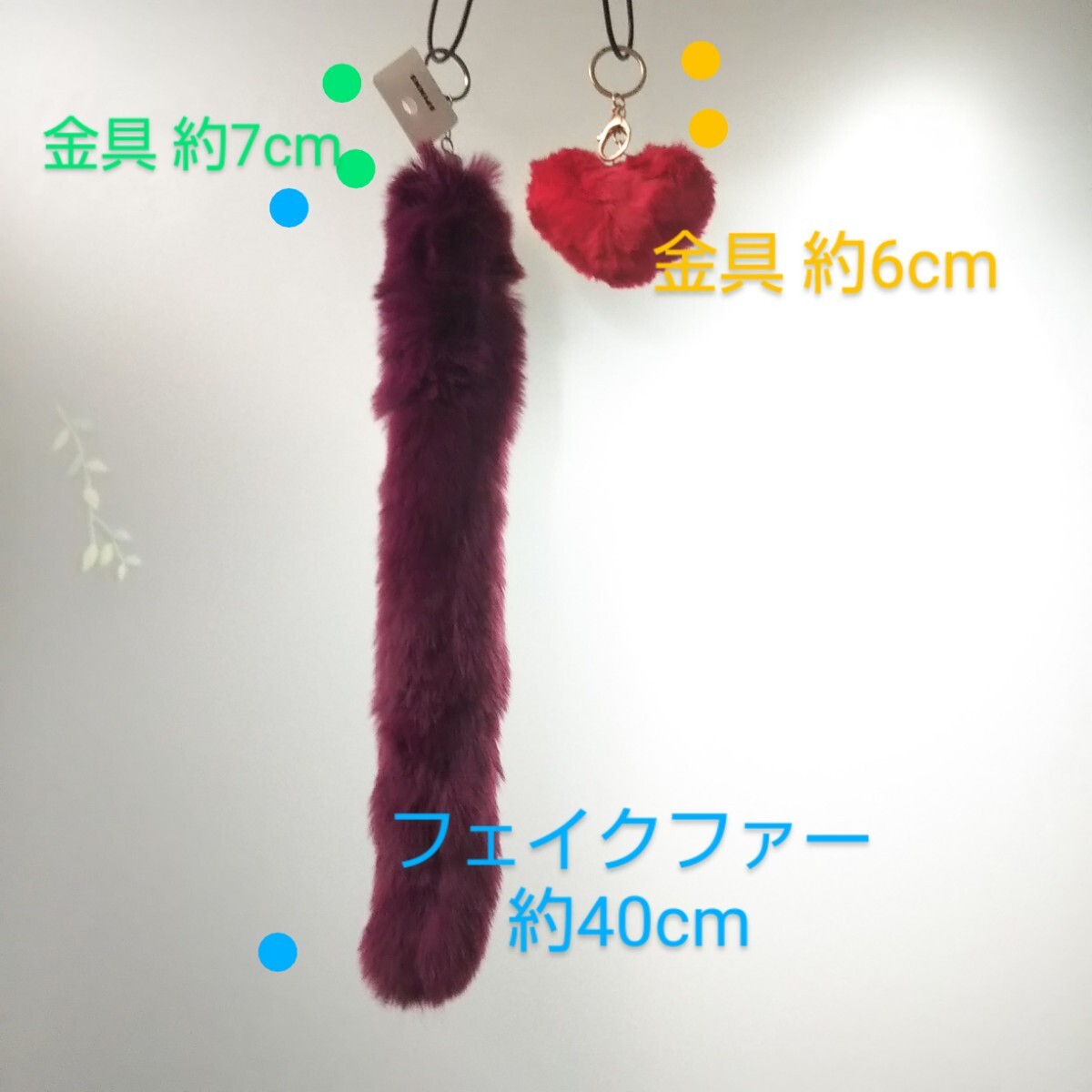 匿/ゆうパケット(mini)送込 【3点set 未使用】キーリング キーホルダー ハート シッポフェイクファー 40㎝ 赤系