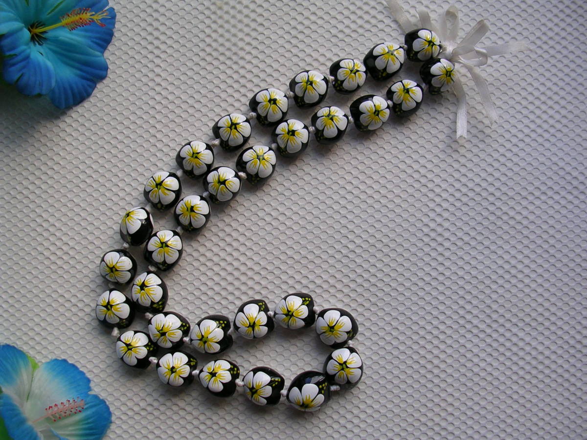 | ●ハワイ♪感謝sale50%off★ククイナッツレイ★ハイビスカス★パールホワイト | |||