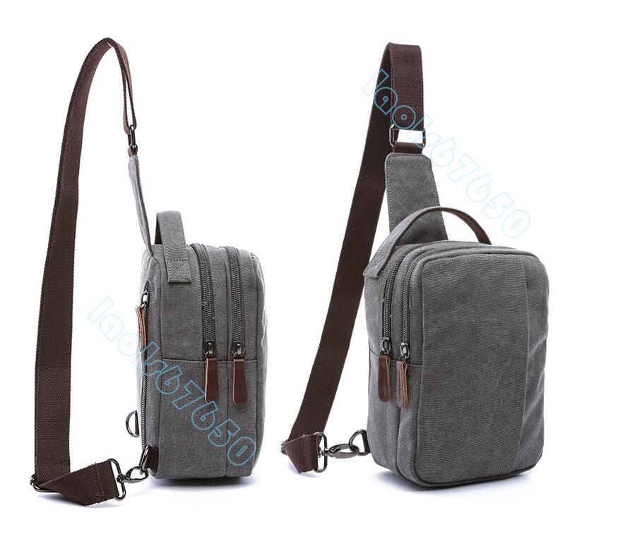 トレンディ キャンバスバッグ メンズ チェストバッグ ストリート カジュアル スモールバッグ