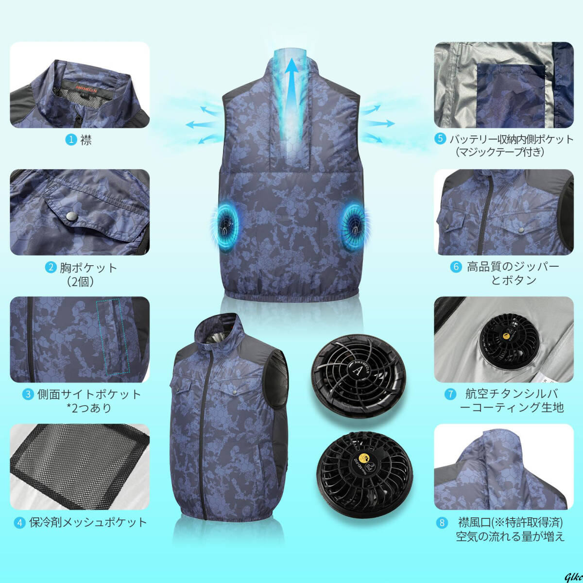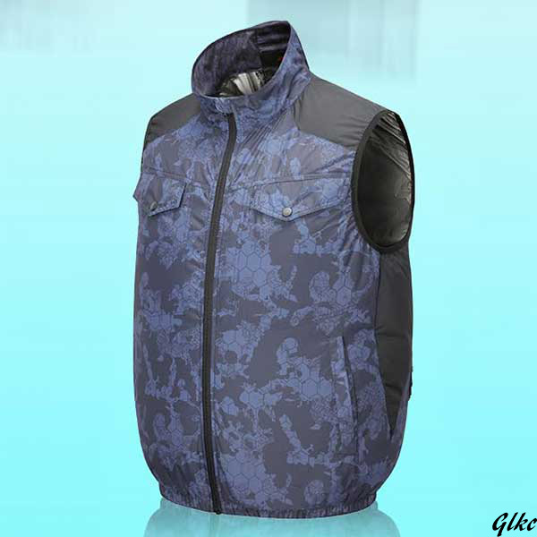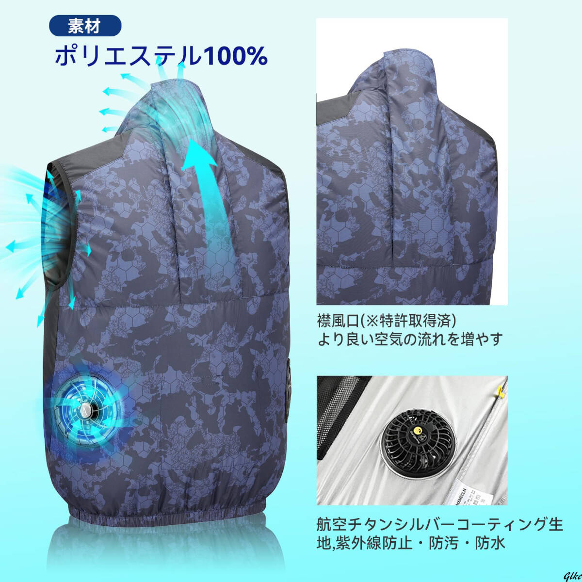 【32V爆風&静音ファン搭載最強空調作業服セット】 ネイビーカモフラージュ XL 空調作業服 ファン付きベスト 熱中症対策