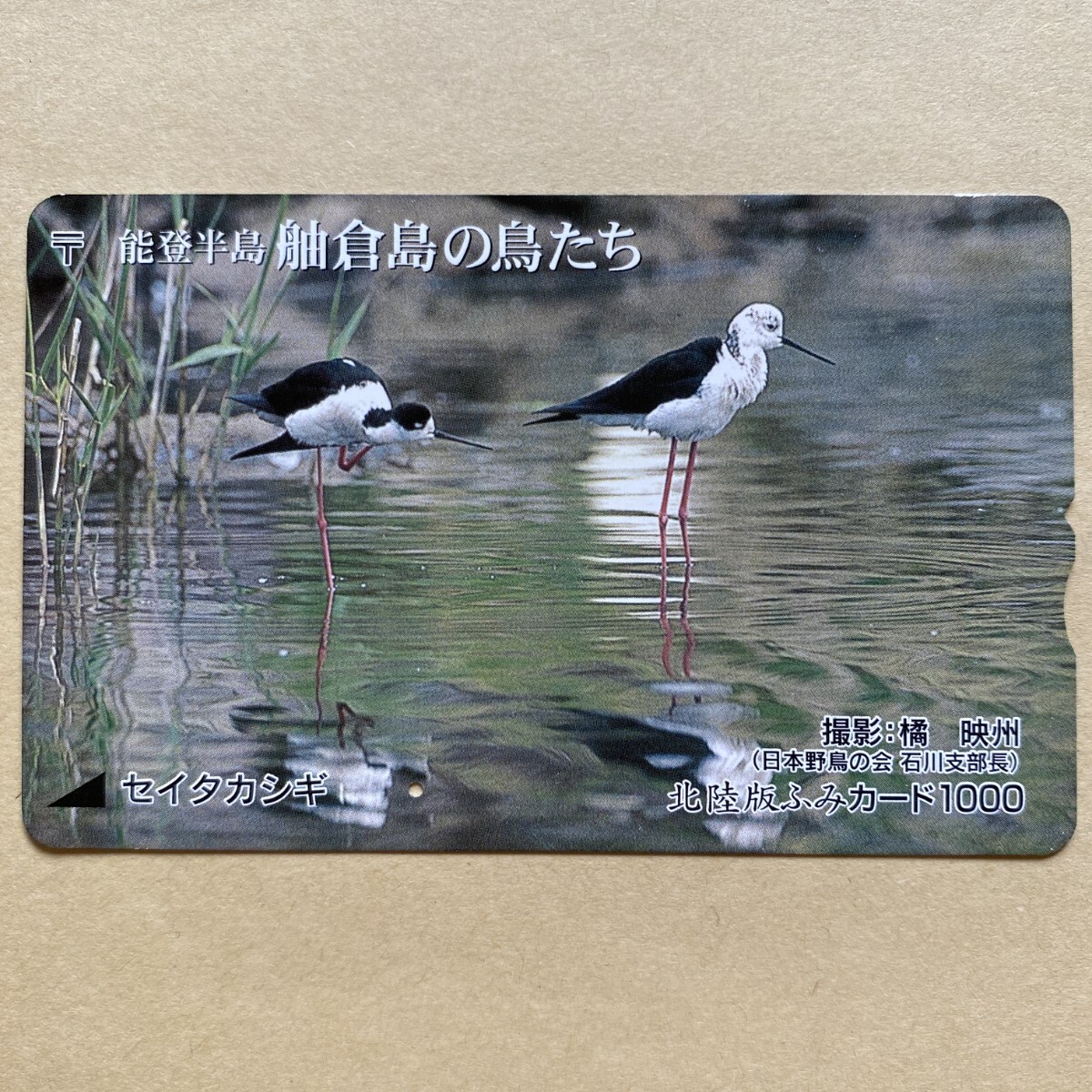 【使用済】 野鳥ふみカード 北陸版 能登半島 舳倉島の鳥たち セイタカシギ