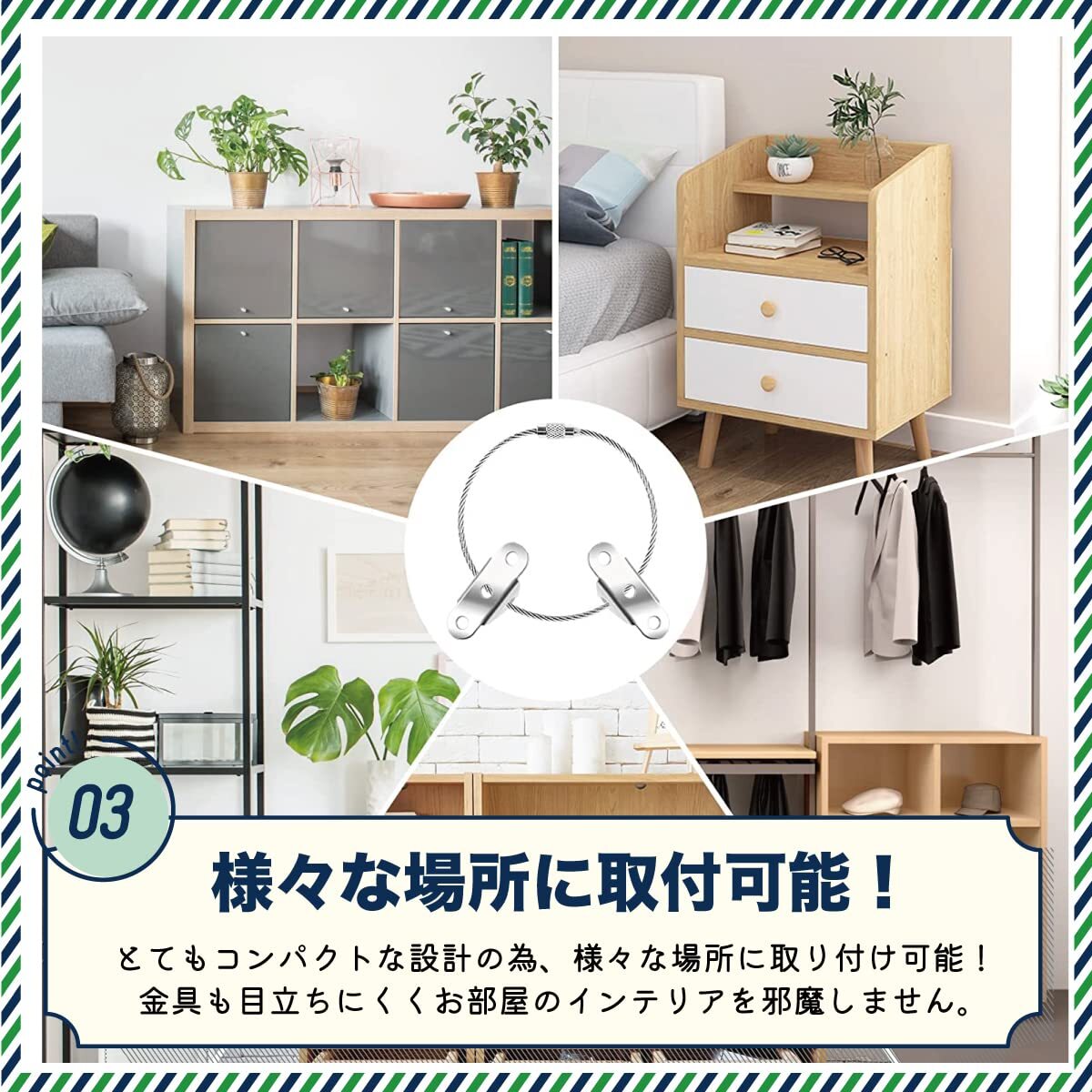 | 商品名 | TJQ 地震対策 家具 転倒防止 落下防止 耐震固定ワイヤー 【耐荷重約60?】 防災用品 安全対策 耐震金具 |